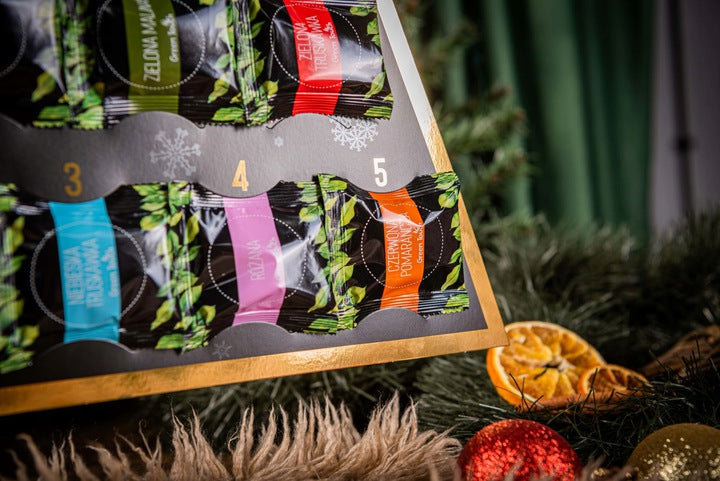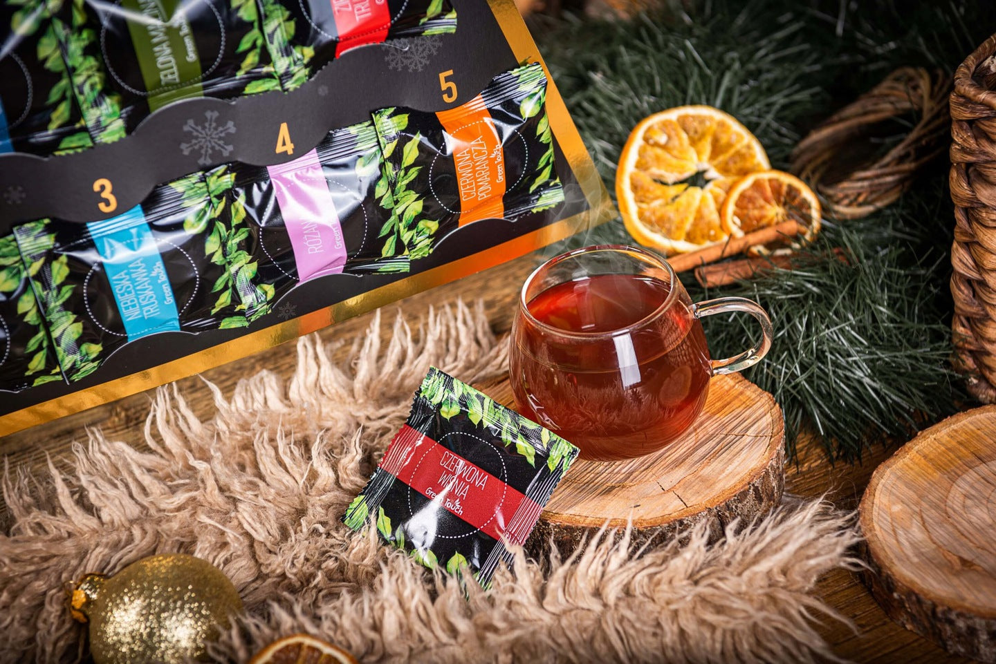 Kiekvienas paketėlis leis išsivirti vieną puodelį (200ml) arbatos belaukiant Kūčių. Rinkinyje yra 24 skirtingų lapų arbatos.