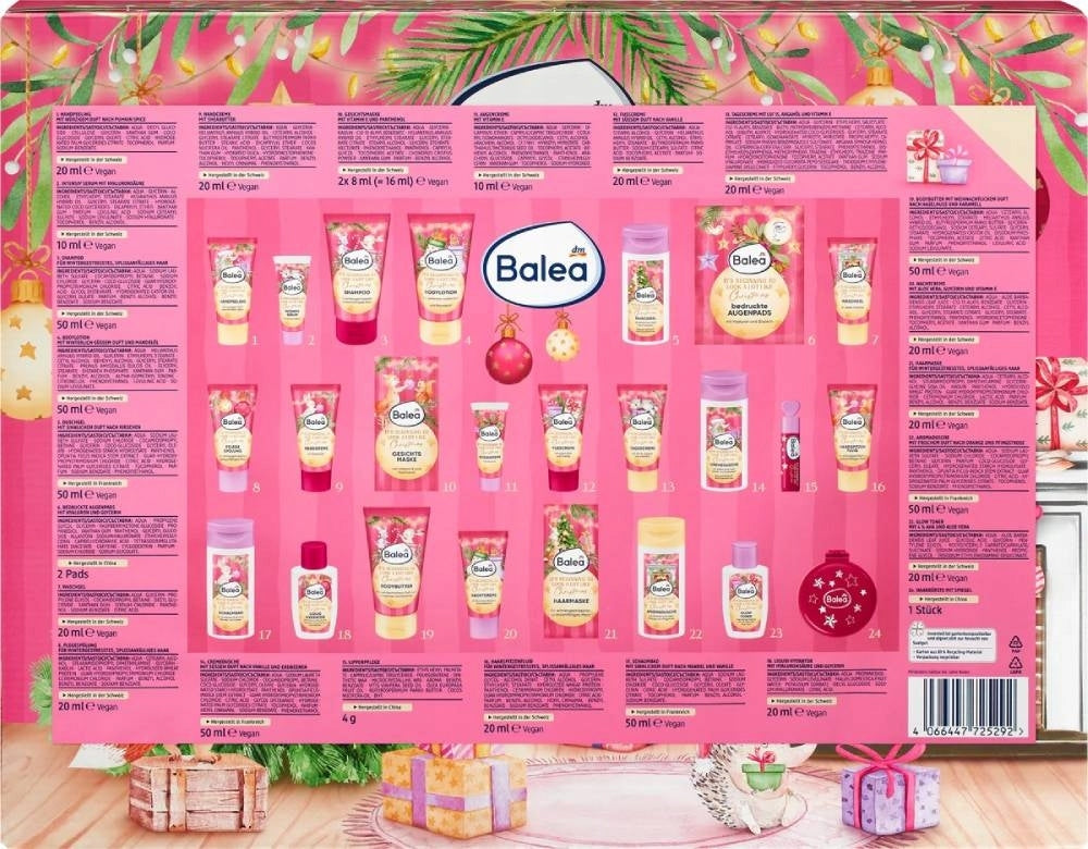 Sudėtyje yra 24 produktai, skirti veido, kūno ir plaukų valymui bei priežiūrai.