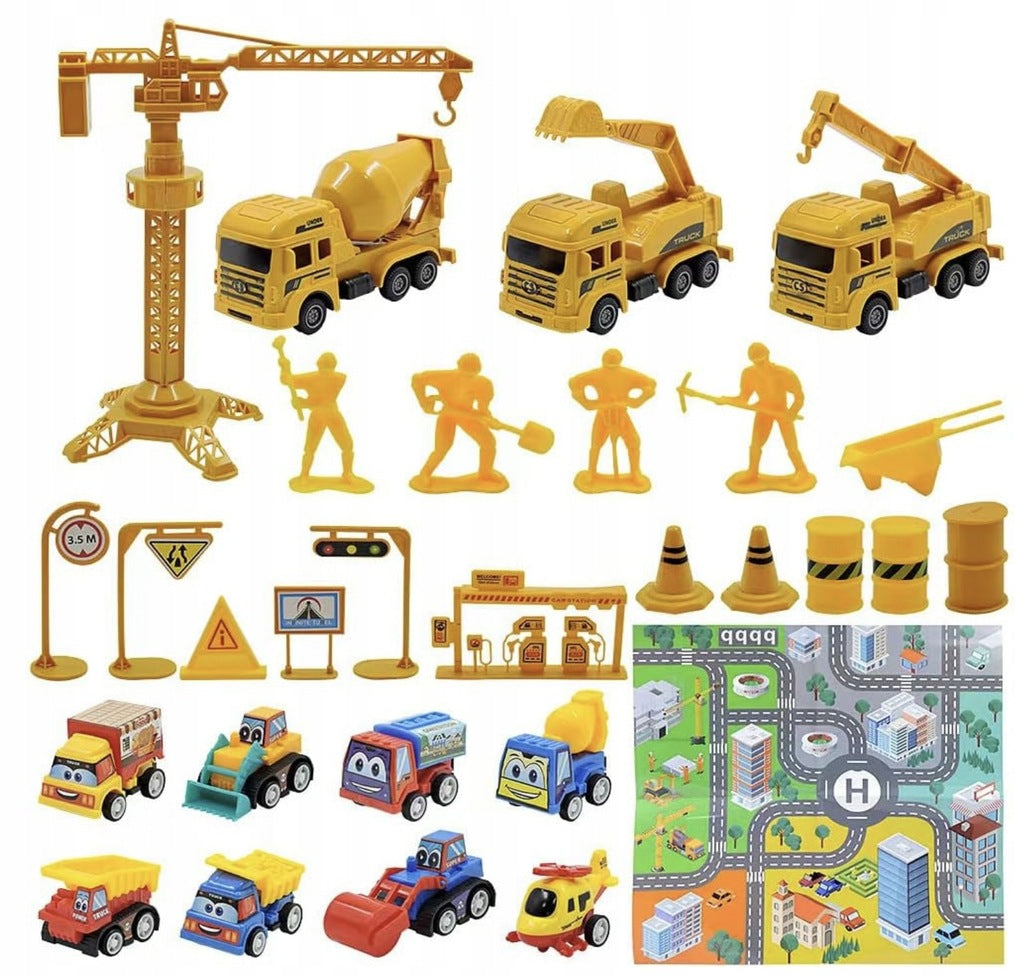 Kalendoriuje yra 60 x 60 cm žemėlapis ir įvairūs priedai, tokie kaip kelio ženklai ir bokštinis kranas. Šie edukaciniai elementai ne tik praturtina linksmybes, bet ir moko vaikus kelių eismo taisyklių bei lavina jų vaizduotę per kūrybišką žaidimą.
