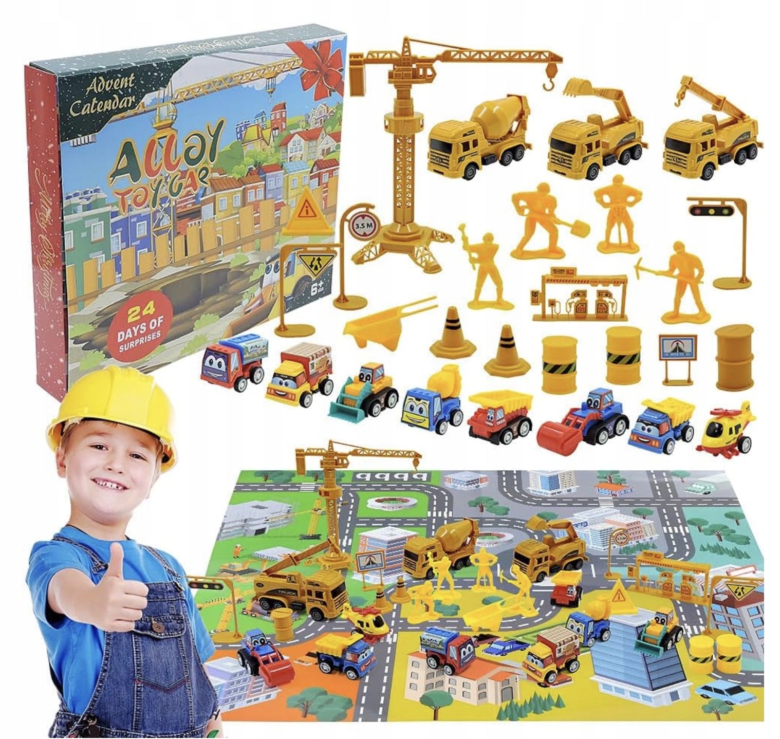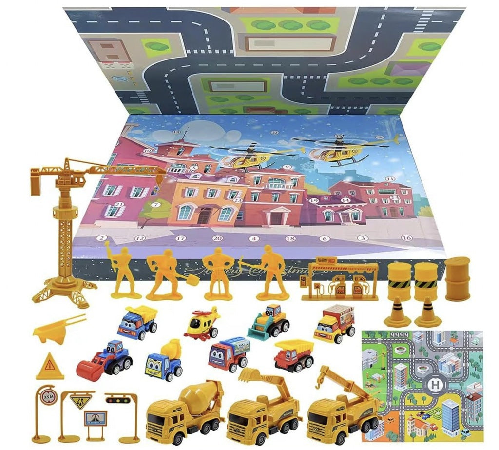 Advento kalendorius siūlo unikalią įvairovę, įskaitant 6 automobilius, 10 atbuline eiga varančių transporto priemonių, 2 sraigtasparnius ir 11 priedų, tokių kaip kelio ženklai ir gatvių žibintai. Šios kolekcijos dėka vaikai gali kurti plačius žaidimo scenarijus, pažindami įvairias transporto priemones ir infrastruktūros elementus.