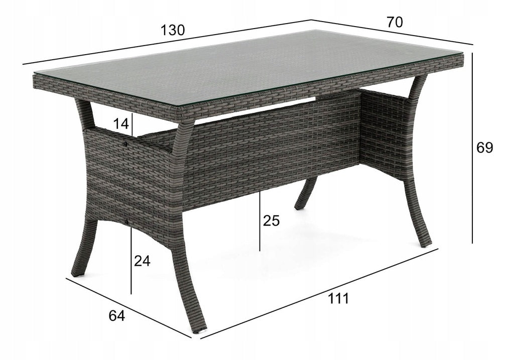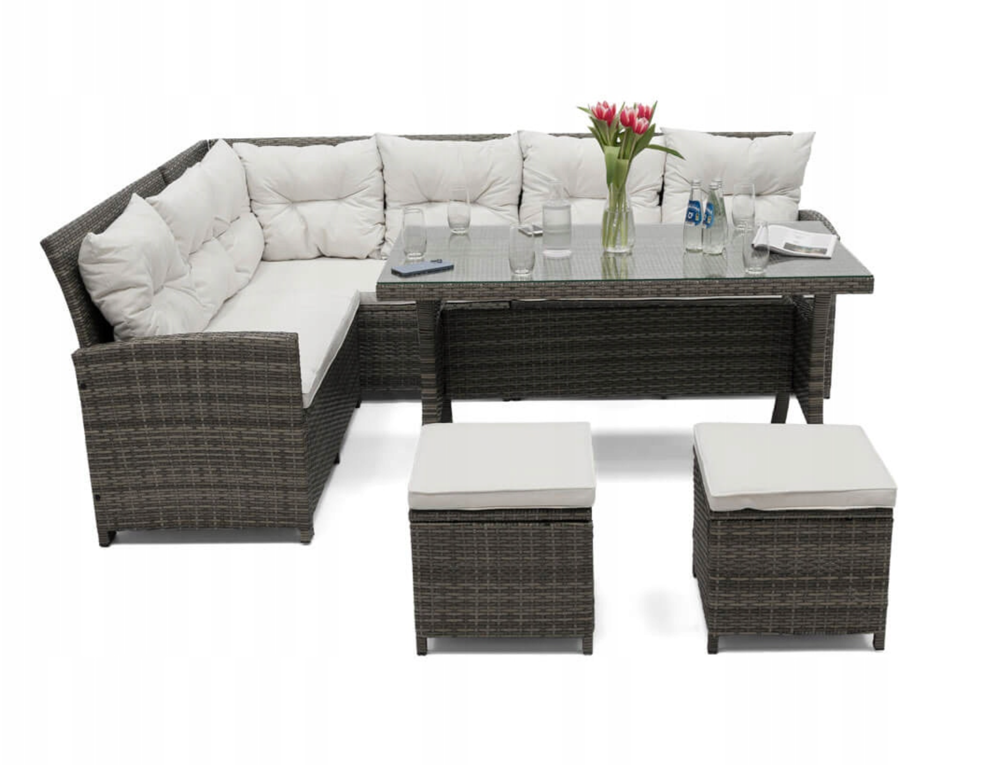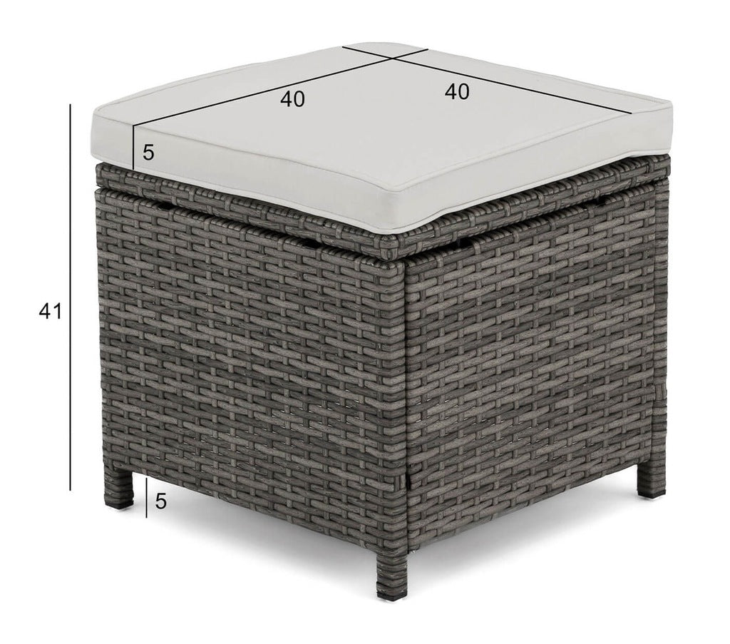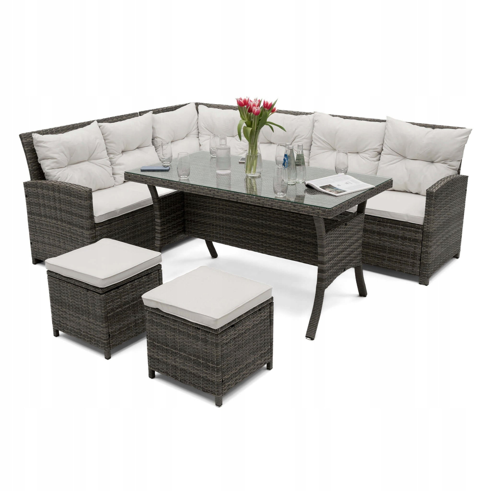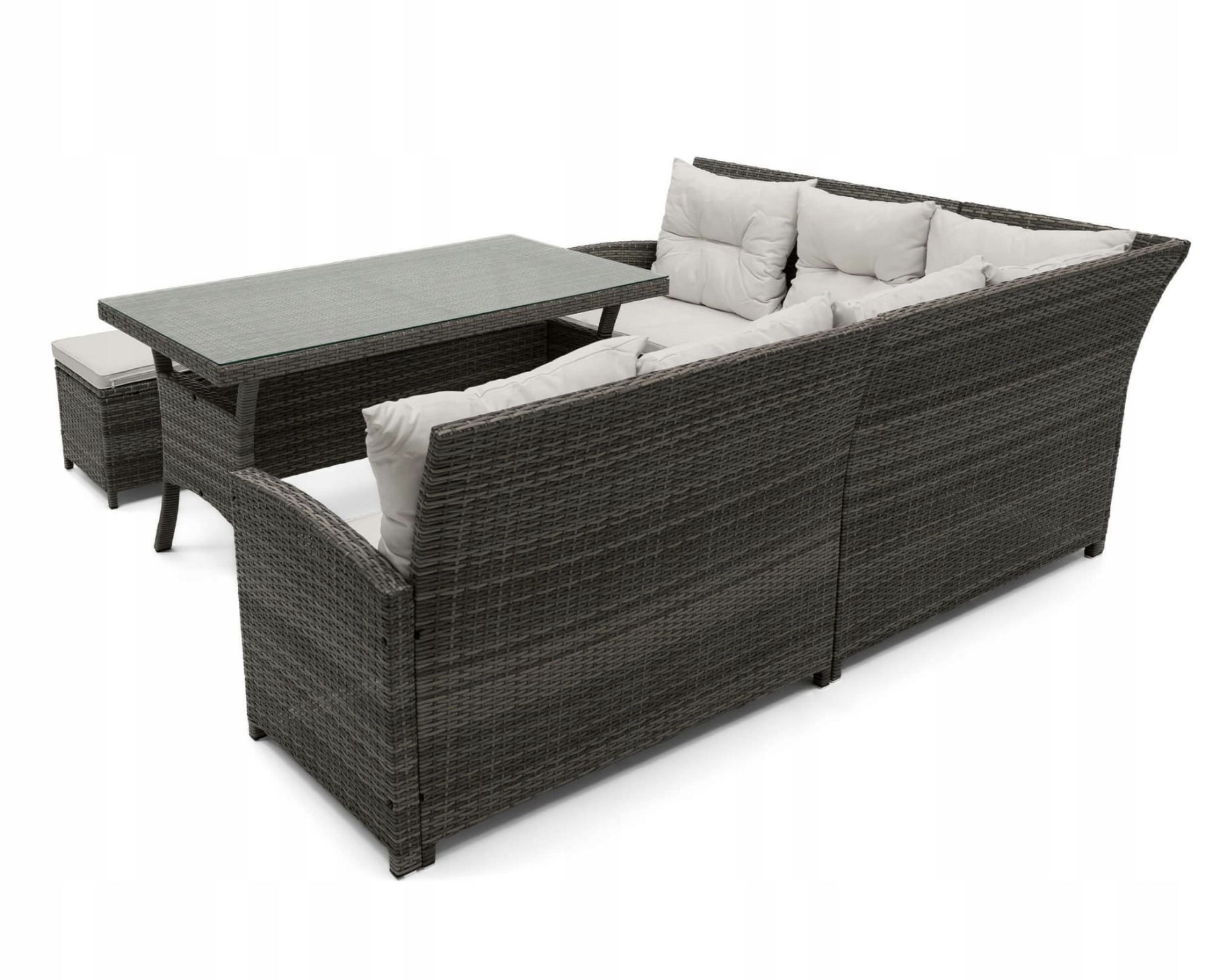 Šis sodo komplektas yra vienas iš didesnių, nes jame telpa iki devynių žmonių. Pagamintas iš labai aukštos kokybės medžiagų, atsparių oro sąlygoms. Rinkinį sudaro didelė kampinė sofa, du pufai ir didelis stalas. Kampinė sofa susideda iš trijų elementų, todėl galima bet kokia konfigūracija ir gali būti naudojama kaip maža sofa. Komplektas tinka įvairaus tipo sodams.