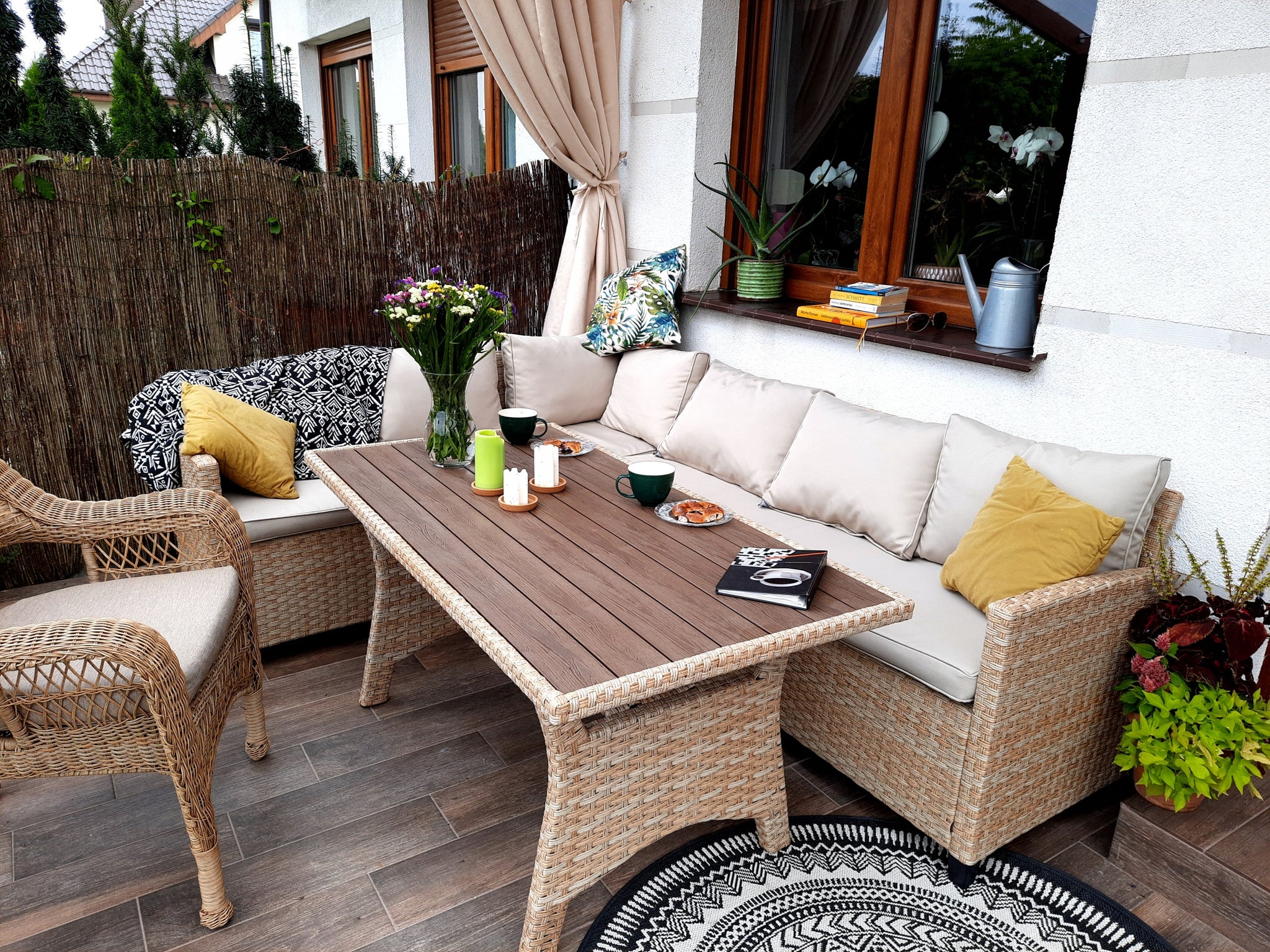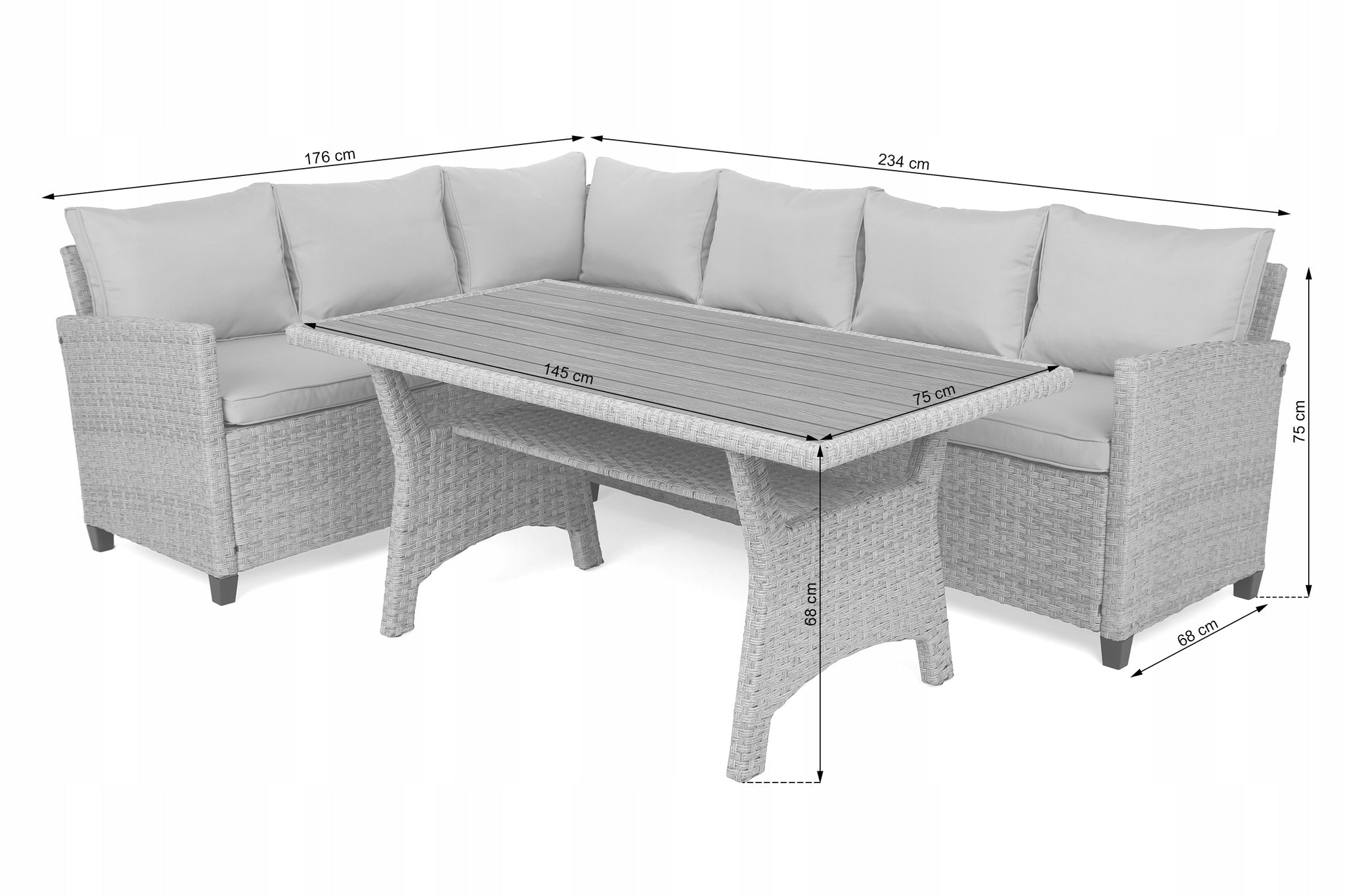 - Rinkinį sudaro: 2 kampiniai segmentai, stalas, pagalvėlės, surinkimo komplektas,