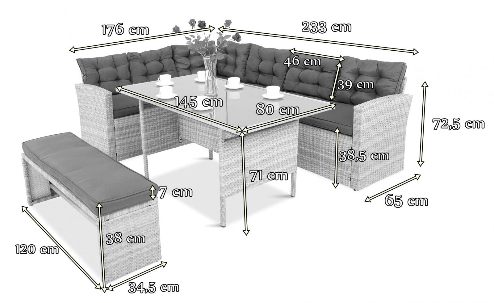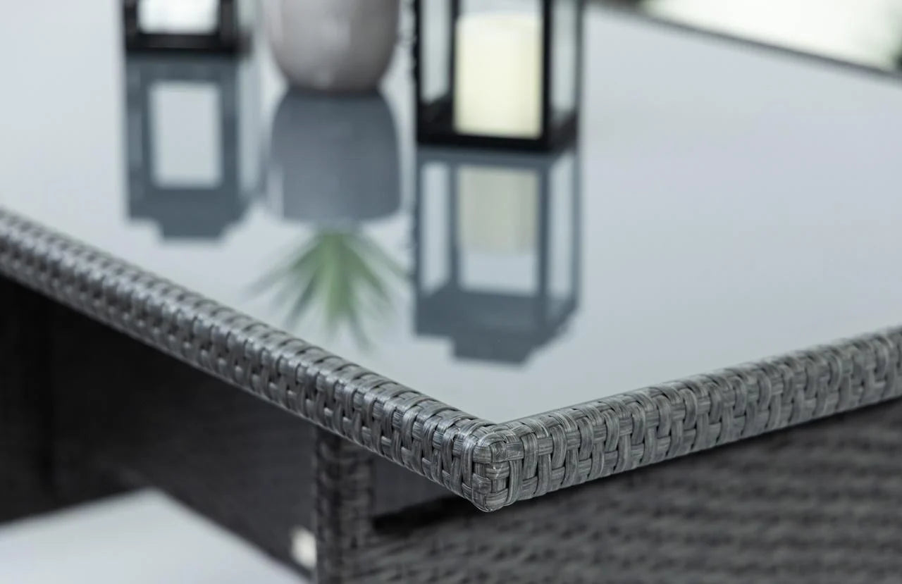 Stalas su 145x80 cm su grūdinto stiklo stalviršiu. Polirotango sodo komplektas Topiano Antracite yra puikus pasiūlymas tiek modernioms, tiek klasikinėms kompozicijoms. Rinkinys labai praktiškas, todėl puikiai tiks kasdieniniam naudojimui.