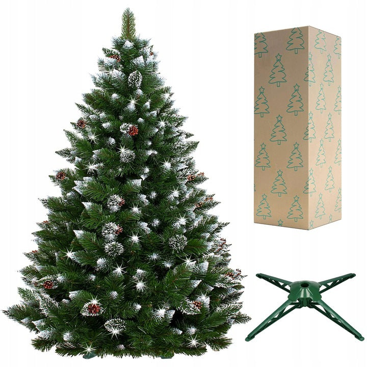 Papildomai: natūralūs kūgiai, šakų šerkšno efektas (balta dalis, balta blizganti dalis)