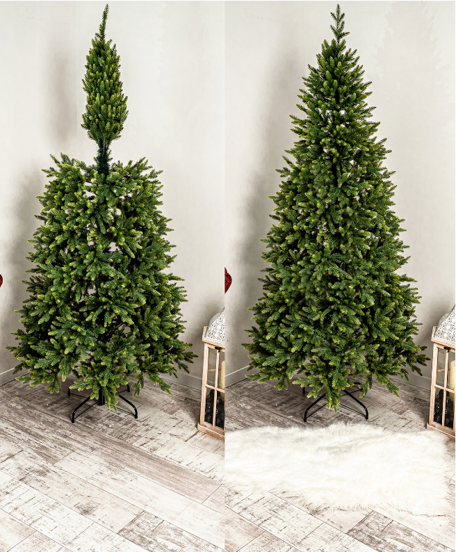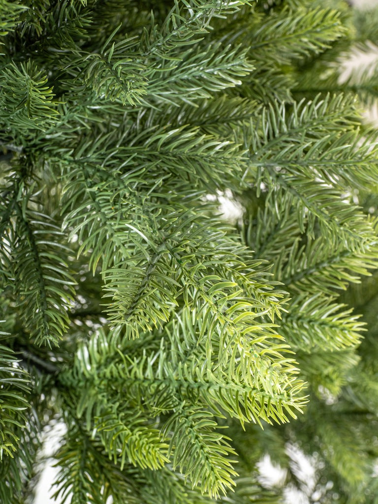 Eglutė pagaminta iš 100% PE šakų, kurių spalva puikiai atkartoja tikrąsias gamtos spalvas. Eglutė yra tanki ir dėl naudojamos gamybos technologijos atrodo itin tikroviškai.