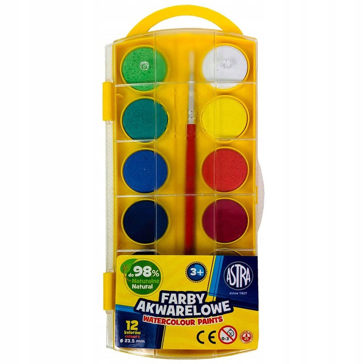 Astra akvareliniai dažai 12 spalvų - fi 23,5 mm
