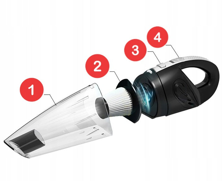 Tokia didžiulė galia mažame įrenginyje, siurblio taip pat nereikia prijungti prie maitinimo šaltinio. Turi įmontuotą akumuliatorių, kurio pakanka visam automobiliui Išvalyti!