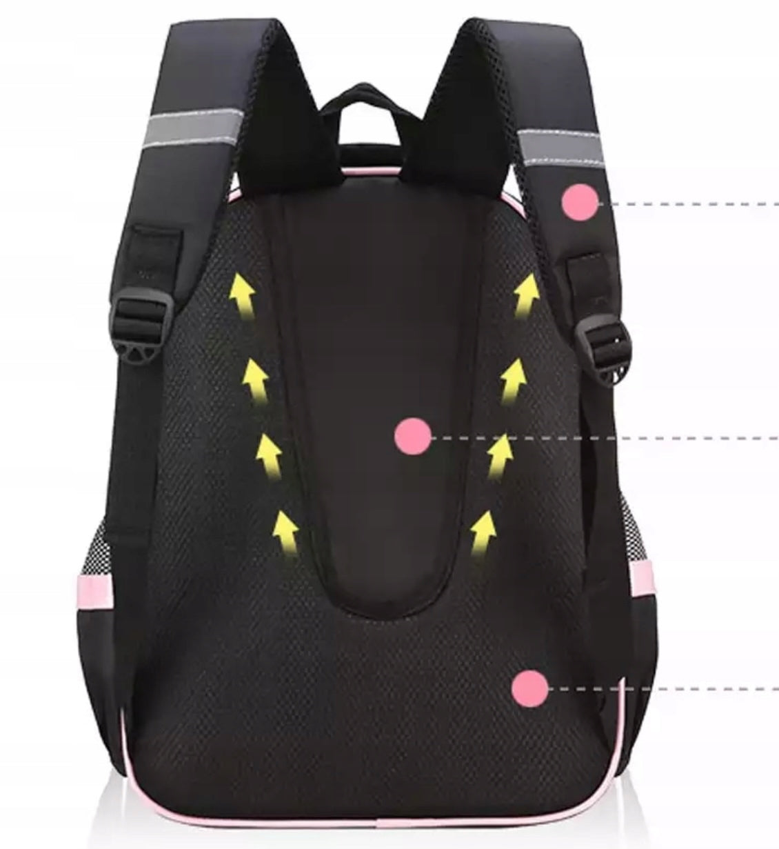 Mokyklinėje kuprinėje yra daugiafunkcinės kišenės ir dvigubi užtrauktukai, suteikiantys pakankamai vietos skėčiams, vandens buteliams, užrašų knygelėms, iPad.