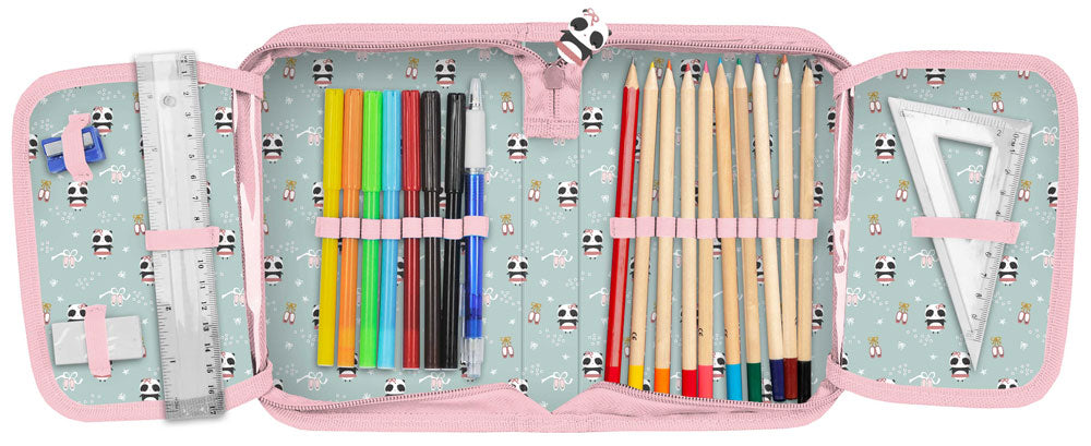 Klasikinis vieno skyriaus, išskleidžiamas pieštukų dėklas su dviem atvartais viduje. Gausiai dekoruotas. Penalas sutalpins būtiniausius mokyklinius reikmenis.