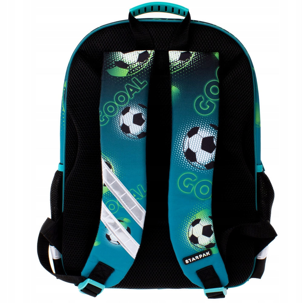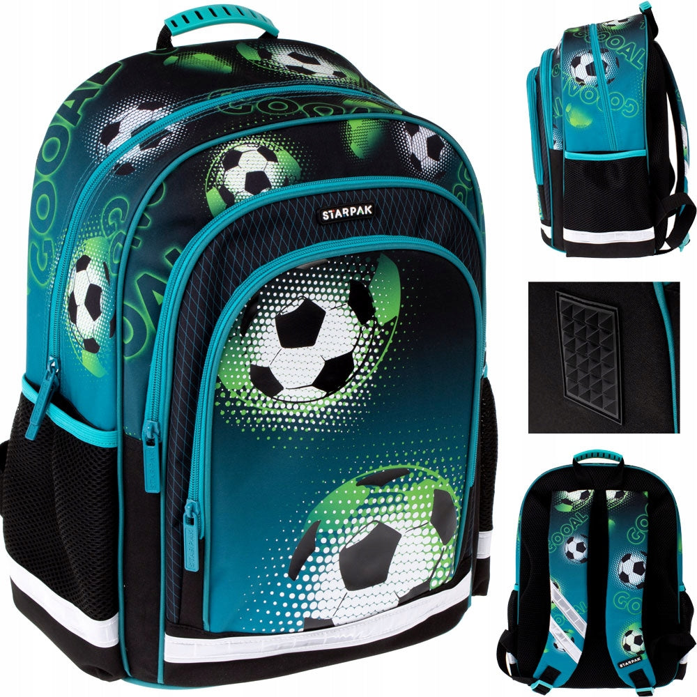 STARPAK mokyklinė kuprinė pagaminta iš tvirtos 600D poliesterio medžiagos, specialiai padengtos vandeniui atspariu sluoksniu. Tvirtos siūlės ir susiuvimas, patvarūs užtrauktukai. Kuprinę sudaro didelis, erdvus skyrius ir 2 priekinės kišenės.