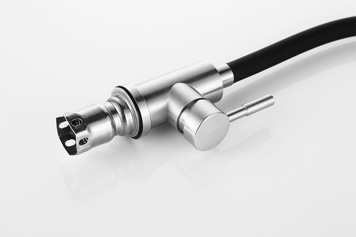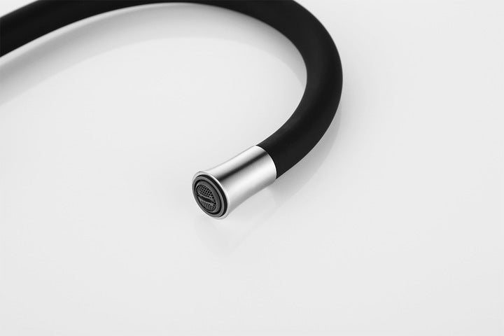 Spalva - maišytuvo rankena šlifuotas aliuminis CHROME + JUODAS snapelis.