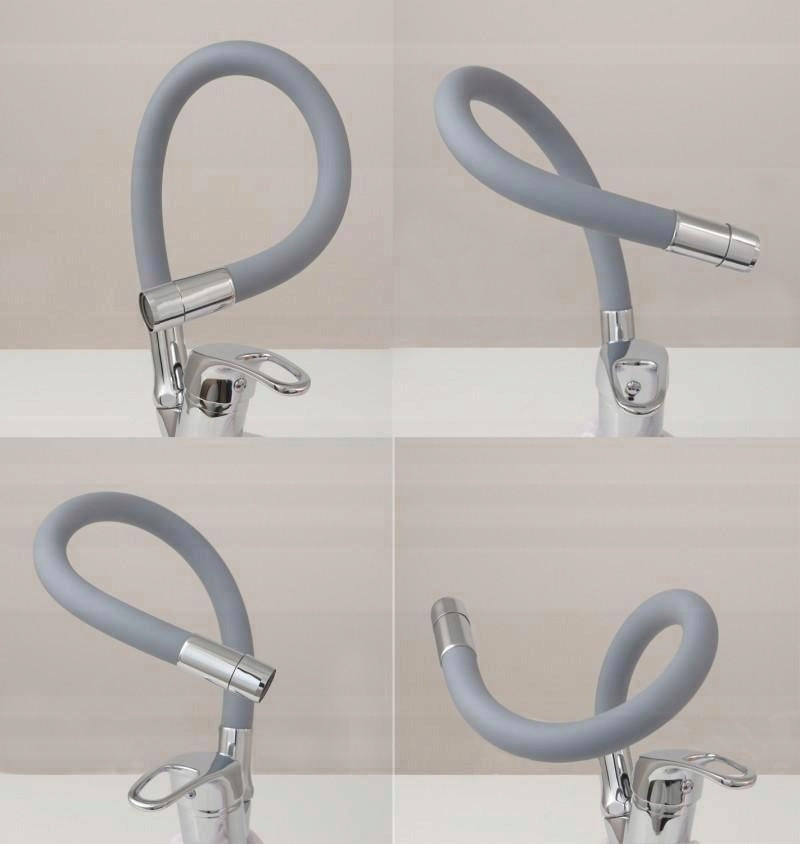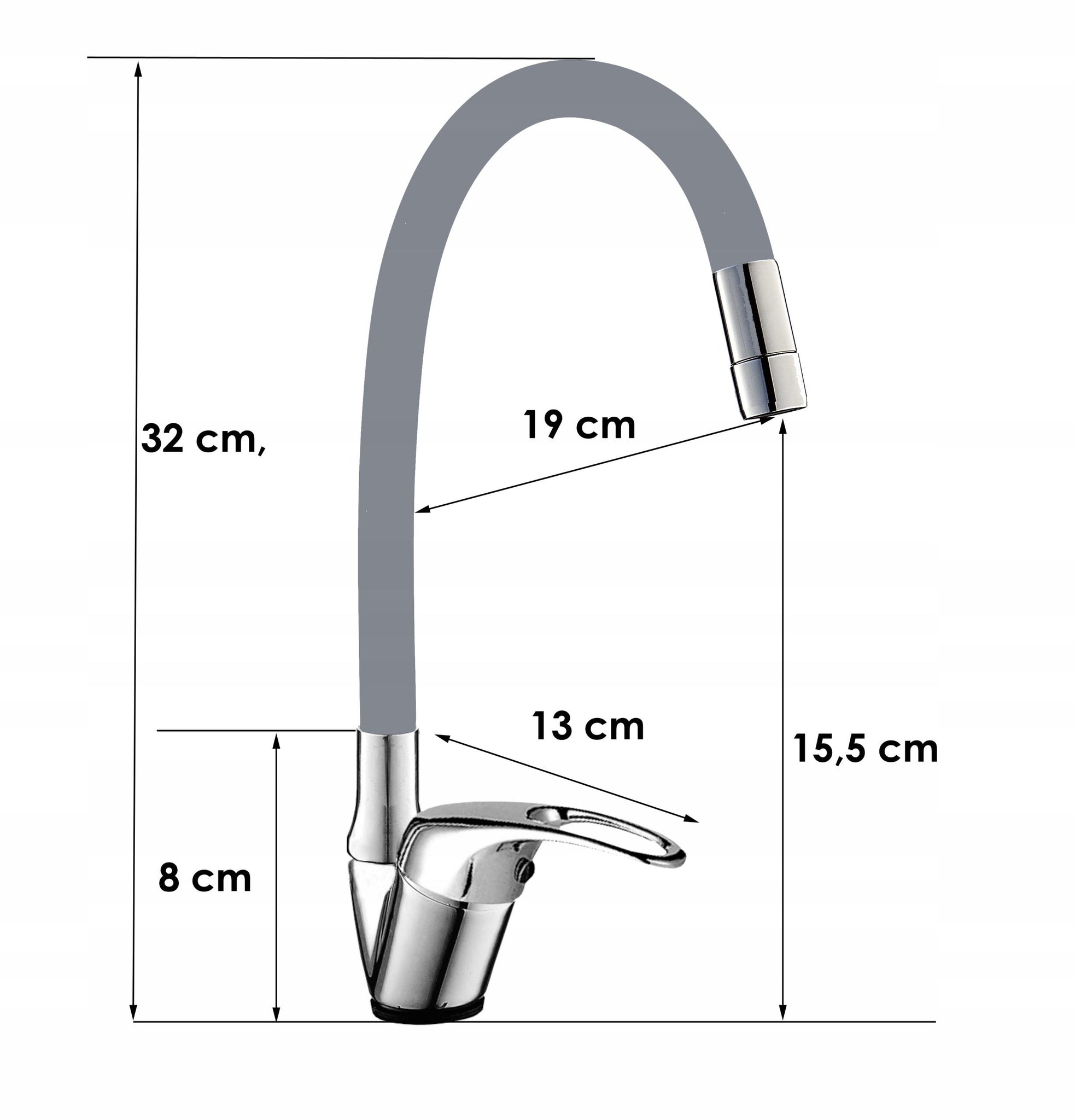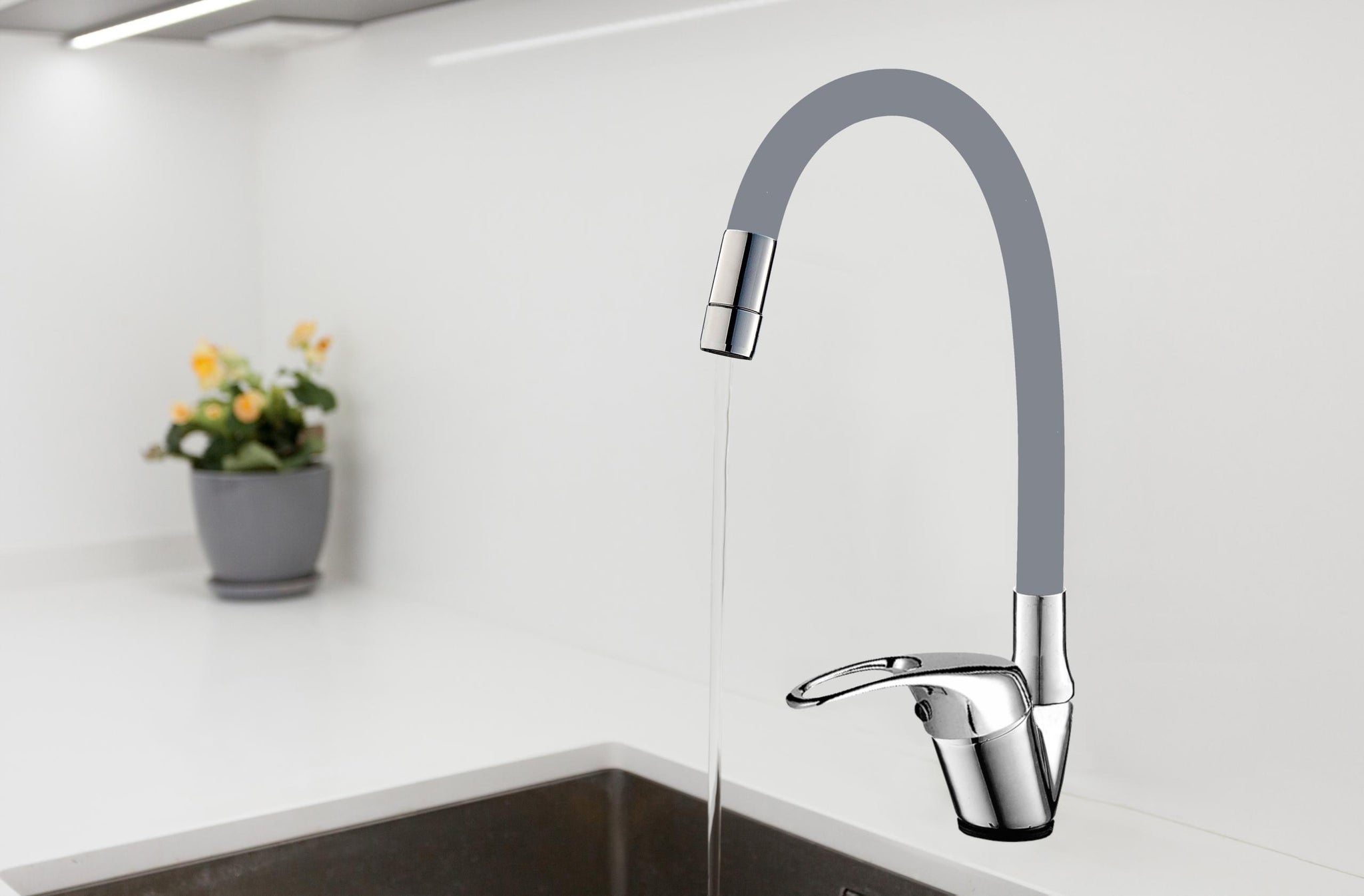 Vieno svirties kriauklės maišytuvas, keraminė galvutė. Jis turi ilgą, judantį, lankstų, pilką snapelį, leidžiantį ne tik greitai išskalauti indus ar išplauti kriauklę, bet ir patogiai pripildyti puodus vandeniu. Aeravimo antgalis – aeratorius – sumažina vandens sąnaudas iki 40%. Komplekte yra dvi pintos žarnos (40 cm F 3/8 ") ir visi surinkimui reikalingi elementai.