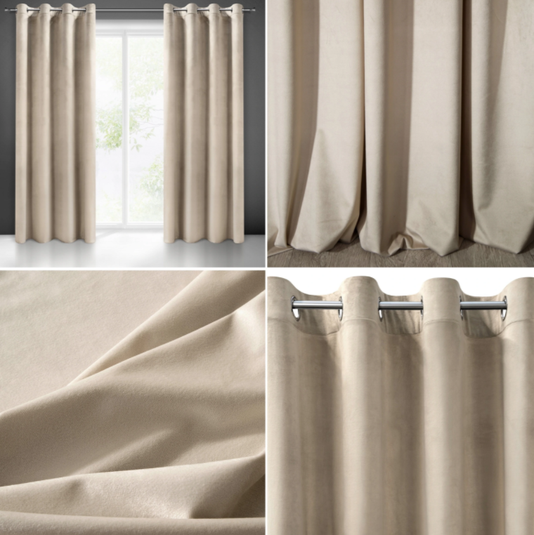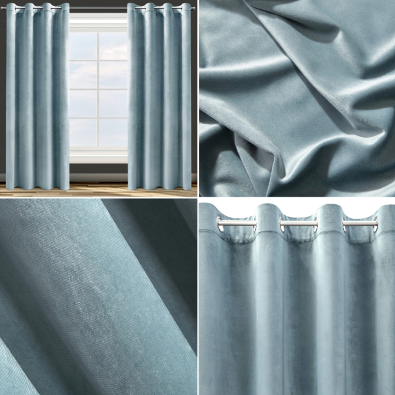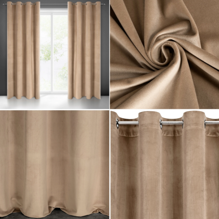 Užuolaidų kolekcija sukurta iš švelnaus aksominio audinio, kuris dėl savo tankumo ir storio puikiai paslepia Jūsų langus – dieną nuo saulės spindulių, o vakarais nuo pašalinių akių.