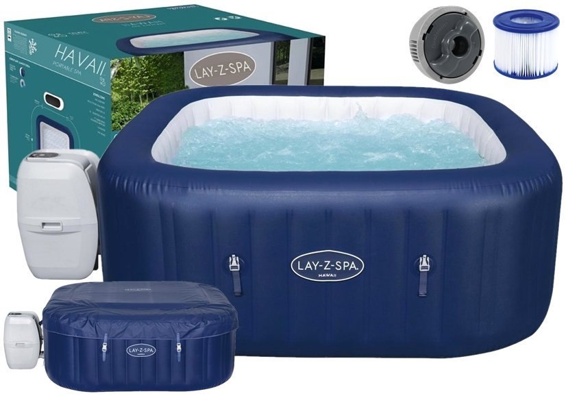 - sūkurinė vonia, - siurblys su integruotu šildytuvu - elektroninis skydelis, - viršutinis dangtis su papildoma termine oro kamera, kad vanduo neatvėstų, - plūduriuojantis cheminių medžiagų tiektuvas, - VI filtras (58323), - remonto rinkinys + išsamus vadovas SPA priežiūrai ir konfigūracija.