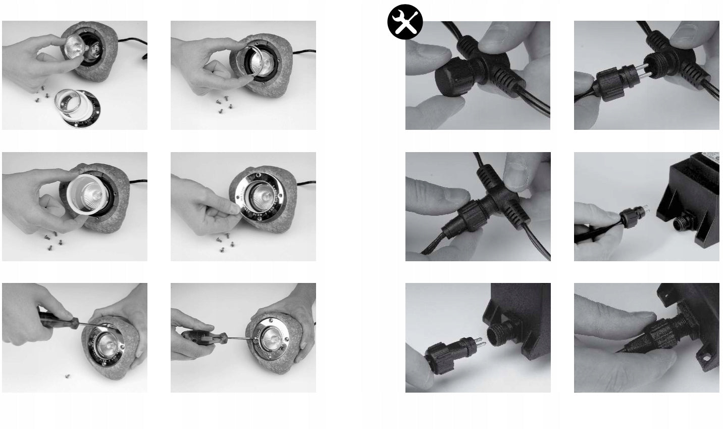 • prie lempos prijungiamas 2m ilgio laidas (2x0,75mm.kw) su hermetine jungtimi,