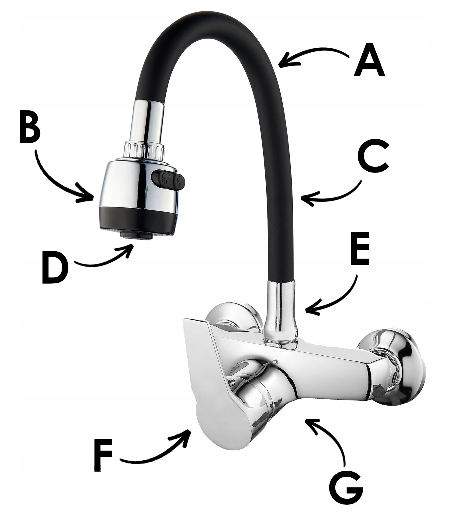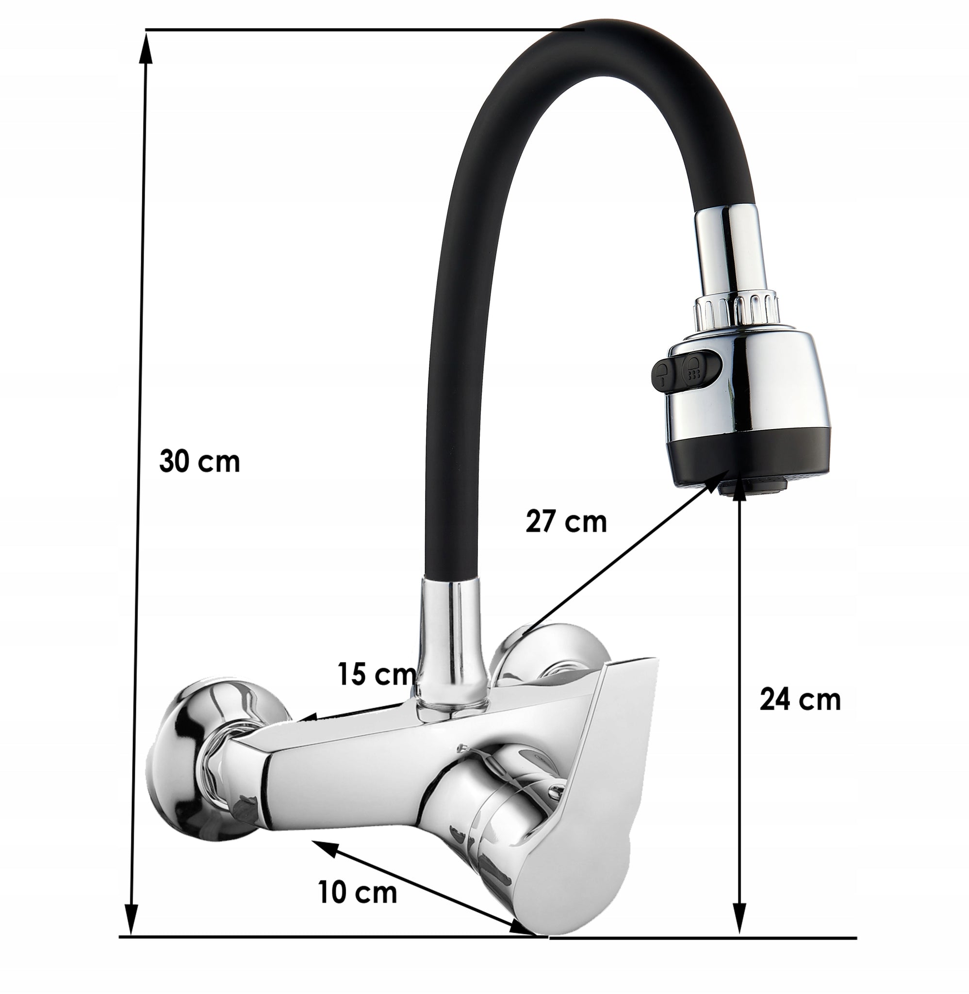 Mechaninis, sieninis, vienos svirties kriauklės maišytuvas. Korpusas dengtas chromu, galvutė keramika. Turi ilgą, judantį, lankstų juodą snapelį. Maišytuvas aprūpintas dviejų srovių antgaliu, kurio dėka galime pakeisti vandens srovę iš klasikinės į difuzinę. Kita vertus, lankstus snapelis leidžia ne tik greitai išskalauti indus ar išplauti kriauklę, bet ir patogiai pripildyti puodus vandens. Aeravimo antgalis – aeratorius – sumažina vandens sąnaudas iki 40%. Į komplektą įeina visi surinkimui reikalingi elementai.