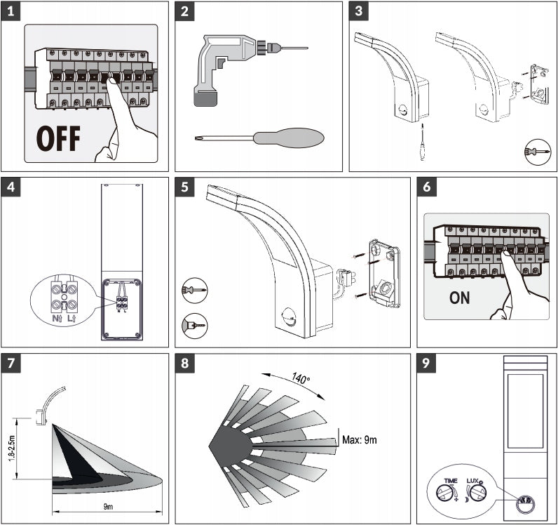 - LUX šviesos intensyvumo reguliavimo diapazonas: <3–2000 liuksų