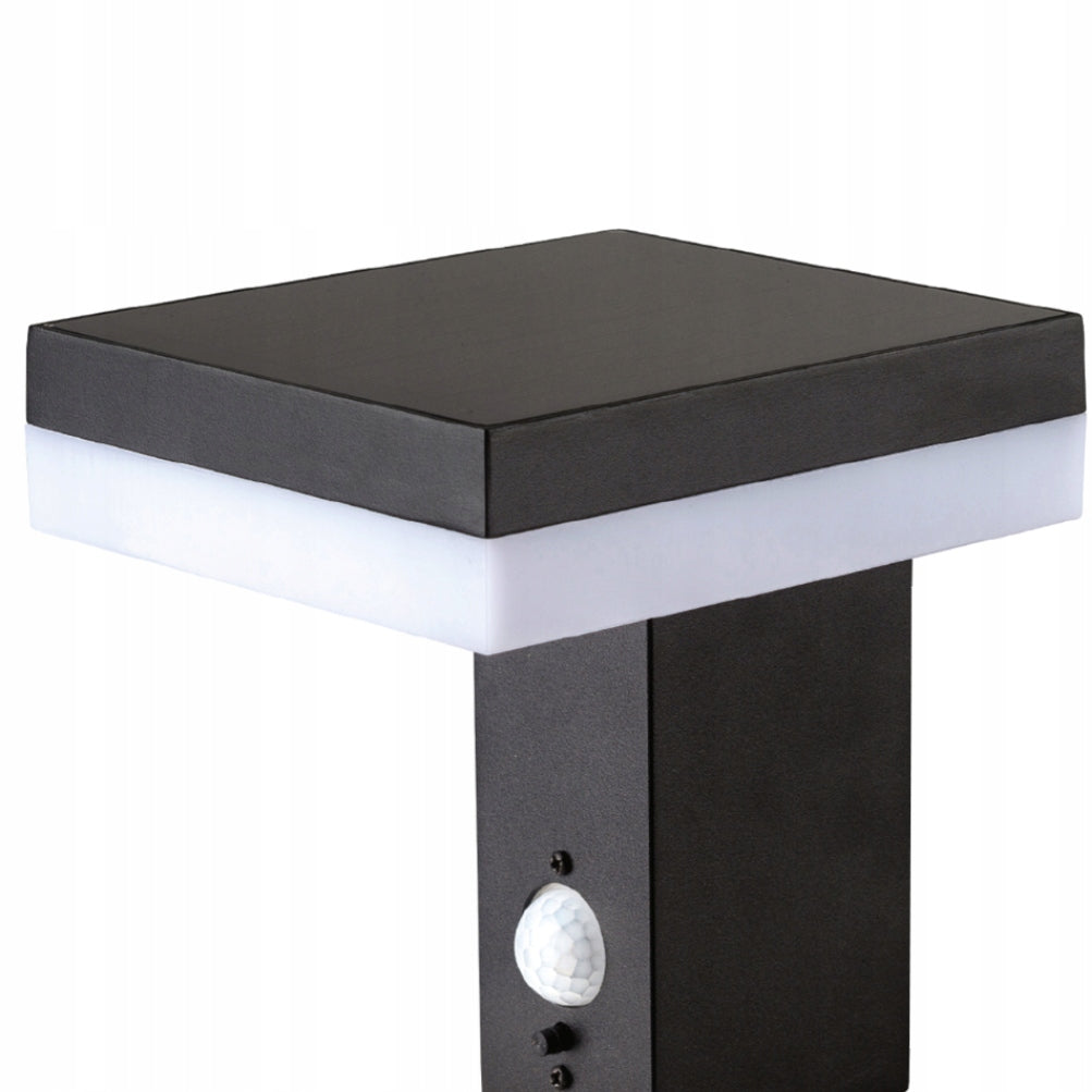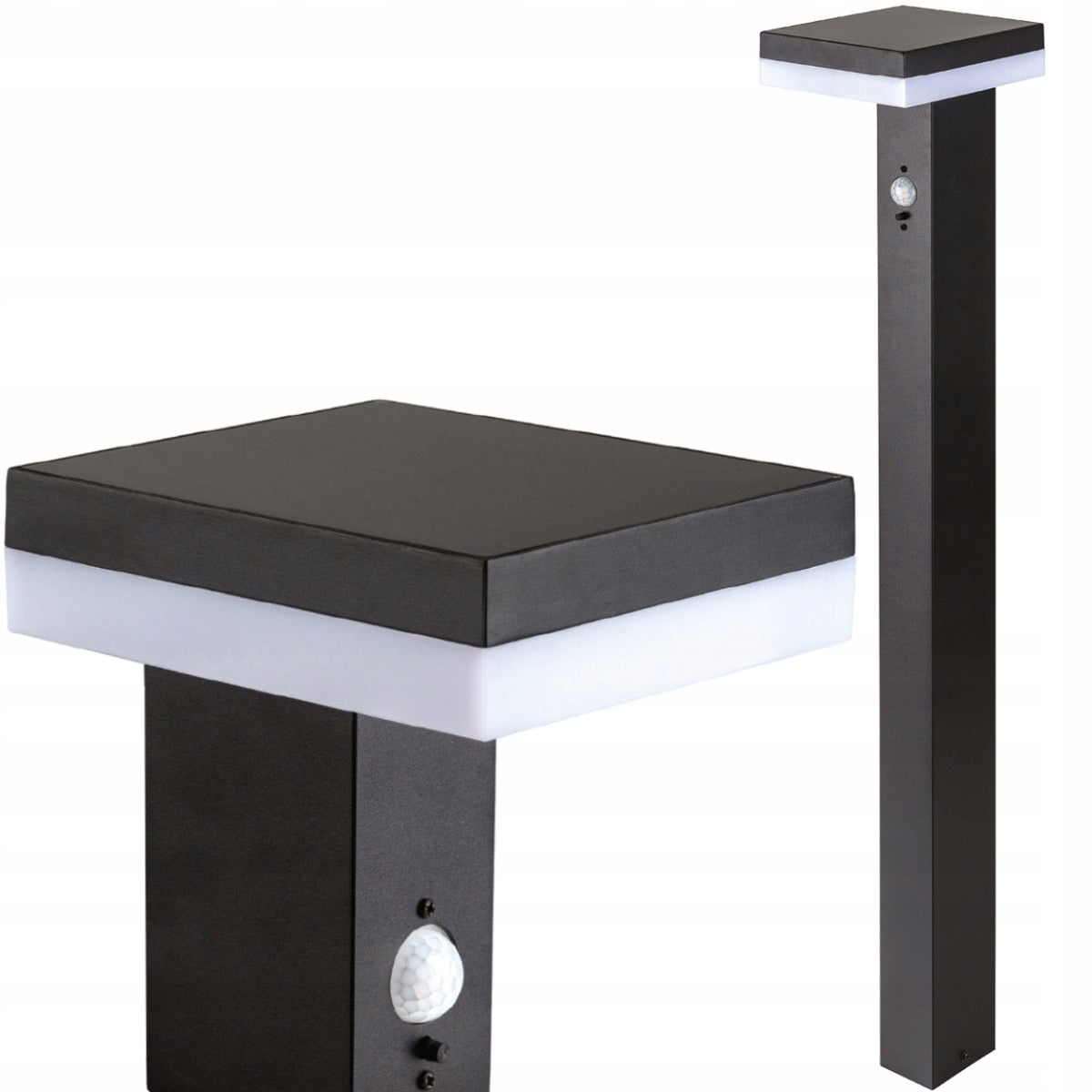 Stačiakampis sodo apšvietimo stulpas su integruotu LED šaltiniu ir judesio davikliu, 80 cm juodos spalvos