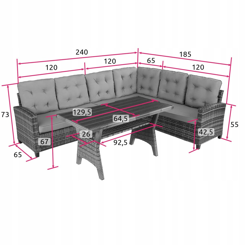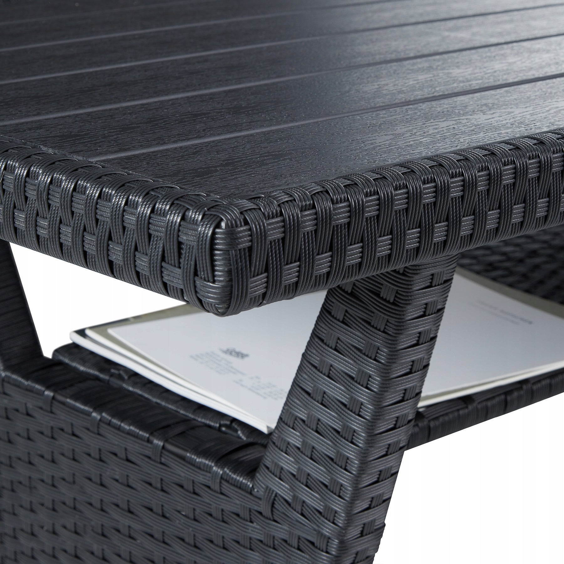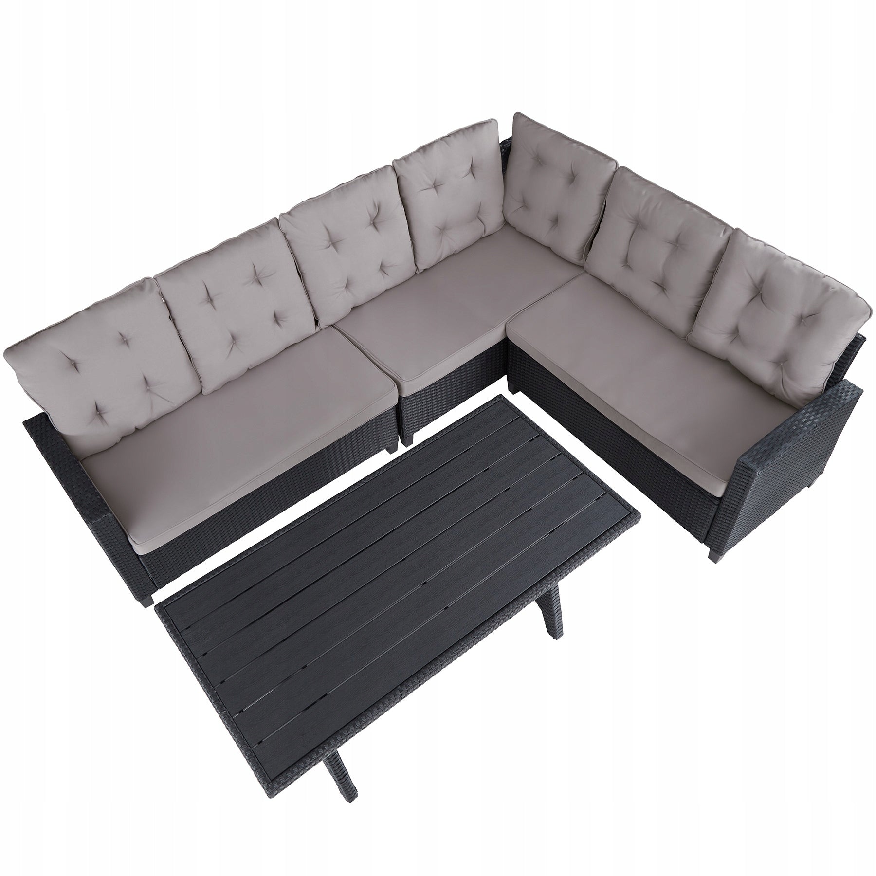 Mėgaukitės lauke su patogiu Tectake Catania lauko baldų komplektu. Itin minkštos sėdynių pagalvėlės ir storos atlošo pagalvėlės leidžia patogiai leisti laiką su šeima ar draugais. Į komplektą įeina didelis stalas su mediniu stalviršiu. Tvirtas plieninis rėmas ir oro sąlygoms atspari, elegantiška polirotango pynė pagerina šio stilingo sodo baldų komplekto eksploatacines savybes.