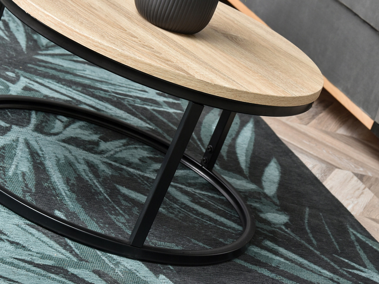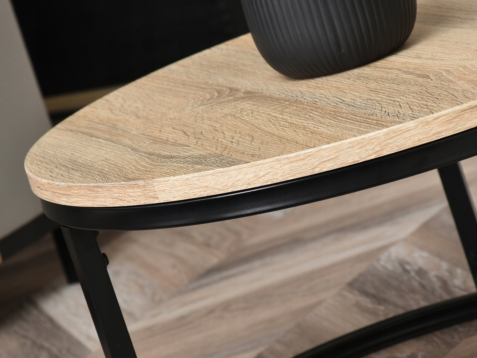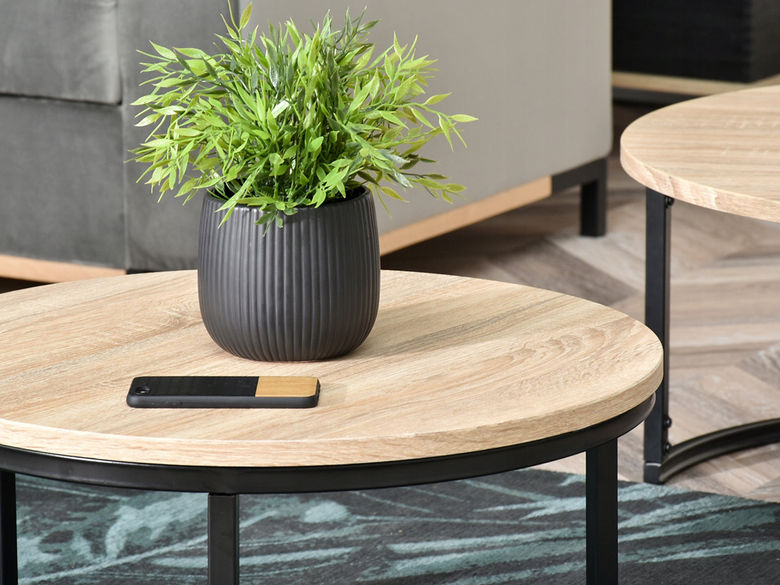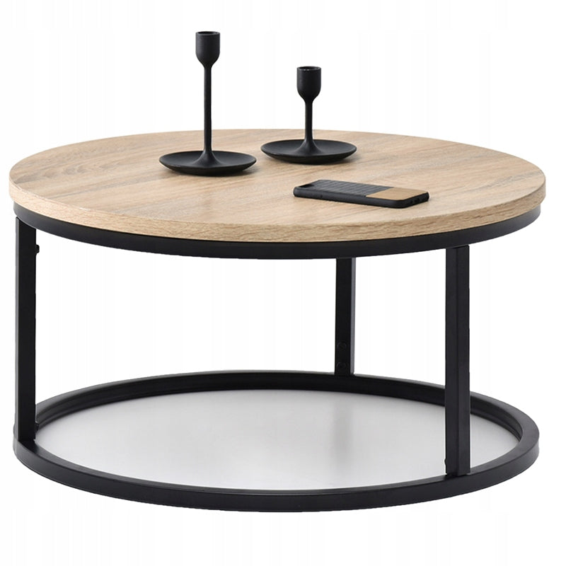 Dizainerio kavos staliukas su lengvu industrinio stiliaus dvelksmu. Apvalus, sonomos spalvos viršus puikiai dera su tokios pat formos juodu pagrindu. Baldas, kuris neabejotinai pabrėš bet kokį įdomų svetainės išdėstymą ir suteiks interjerui stiliaus.