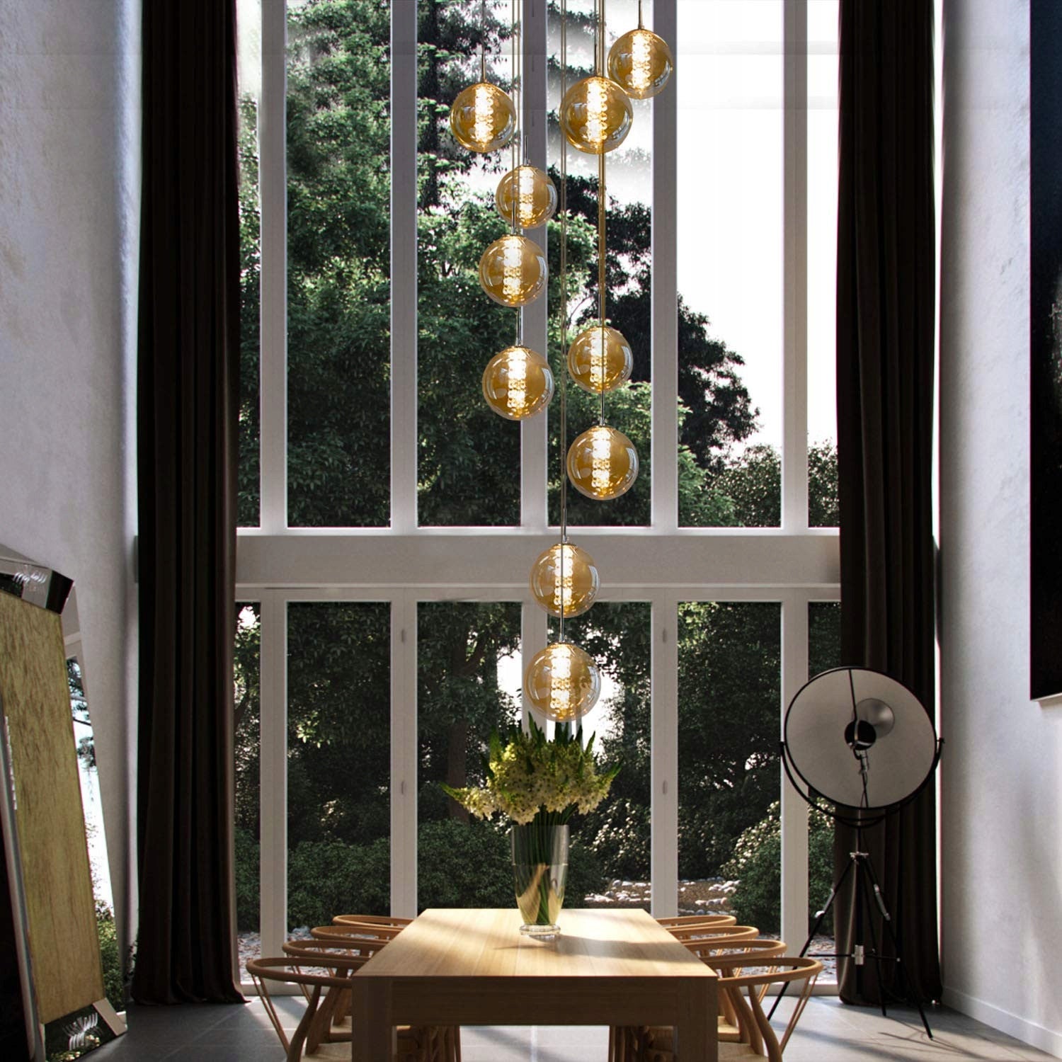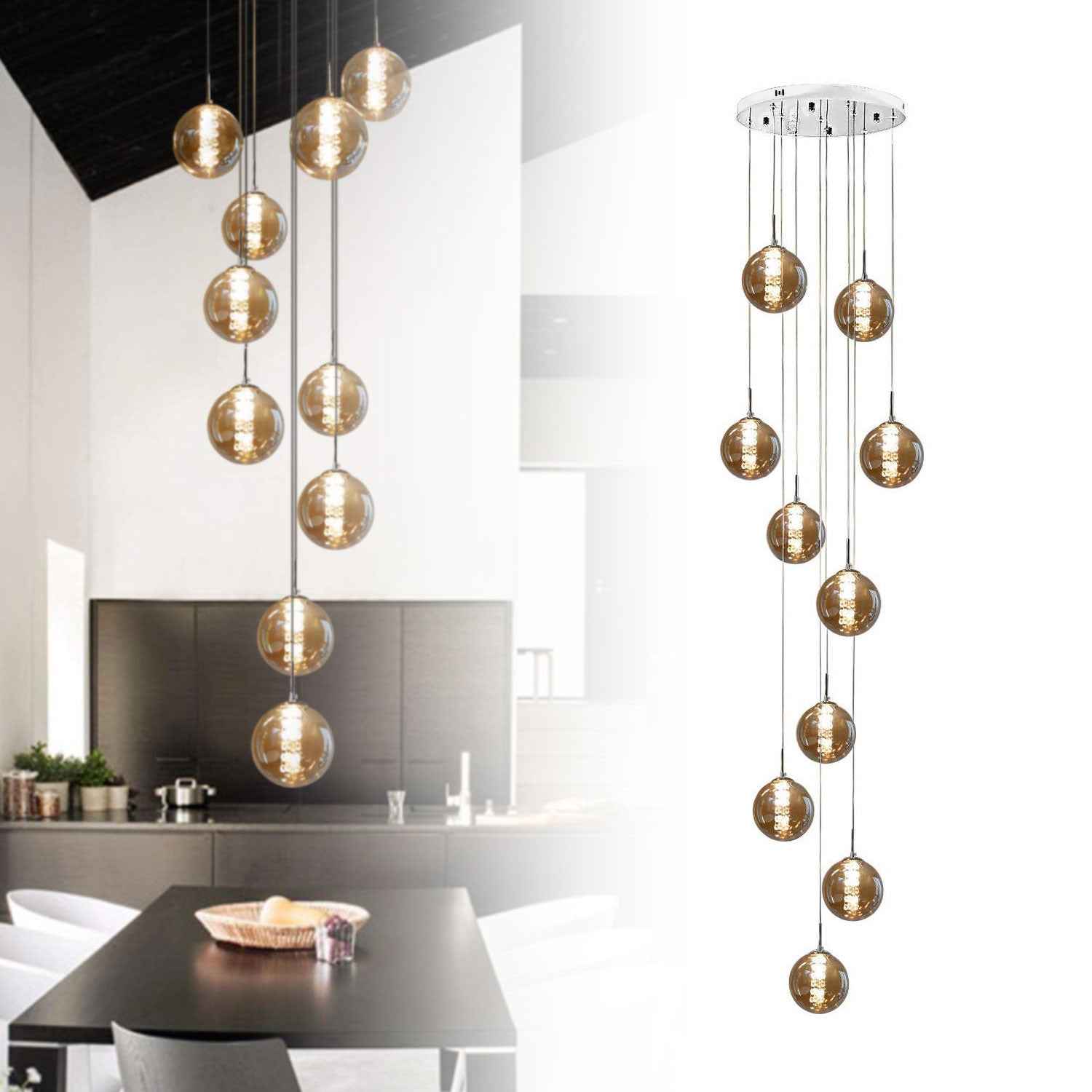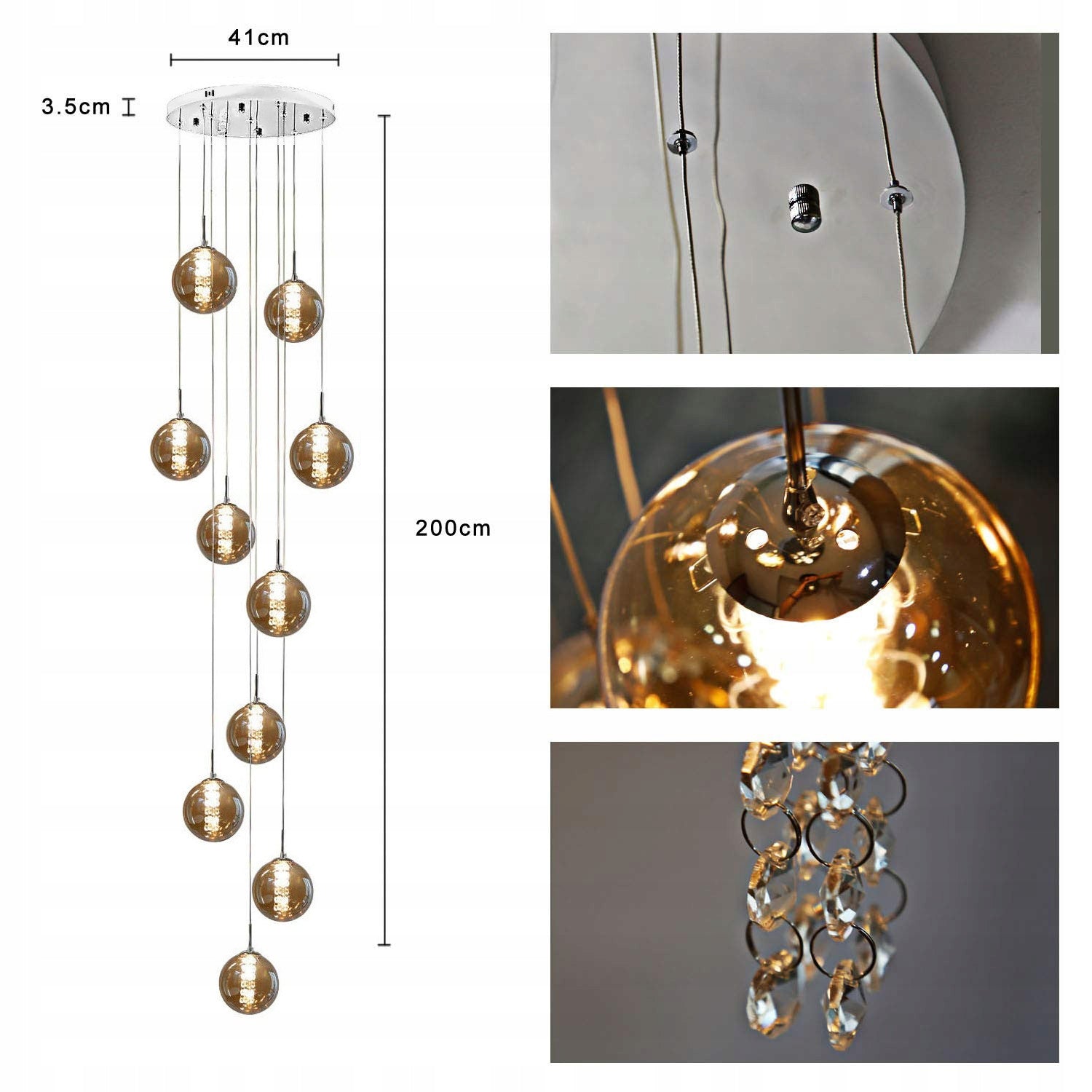 Reguliuojamas aukštis - Elegantiškas pakabinamas šviestuvas su aukštos kokybės stiklo korpusu.  Pakabinamas šviestuvas, esant poreikiui, reguliuojamas nuo 80 cm iki 200 cm