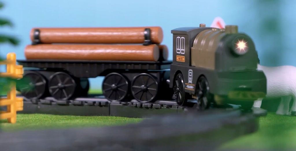 Priekinėje dalyje sumontuota šviesa, kuri įsižiebia įjungus traukinį, o perėjus per elementą su jutikliu, suveikia tikro lokomotyvo garsas.