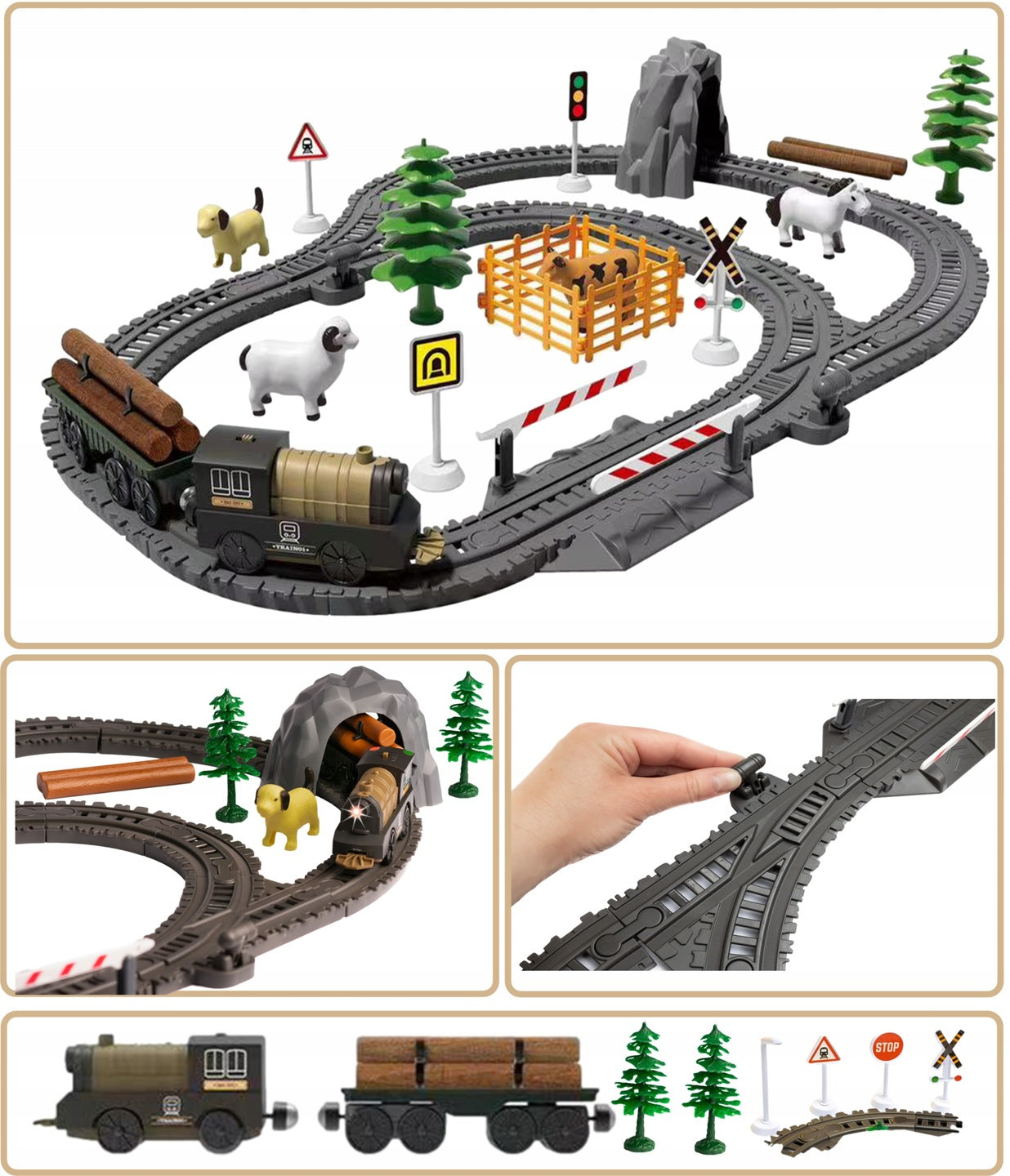 Lengvas jungimas ir stabilumas - takelio fragmentai gali būti lengvai ir greitai sujungiami vienas su kitu, o dėka kaiščių konstrukcija išlieka stabili žaidimo metu. Lokomotyvas ir vagonas sujungti naudojant stiprų magnetą.