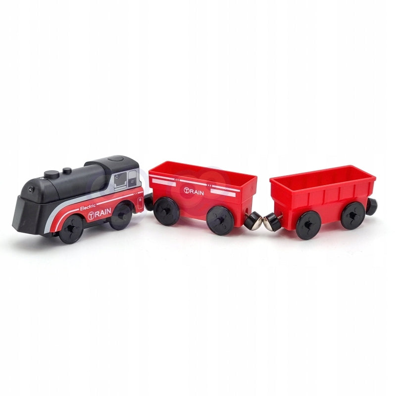 Traukinys tinka daugumai žinomų gamintojų medinių bėgių, pvz.: Brico, IKEA, Little Steps, ELC, Woodyland, Tesco, Carousel, Eichhorn ir kt... (vėžės plotis - 4 cm, ašies plotis 2,5 cm),