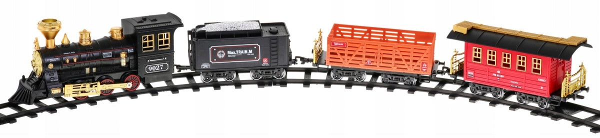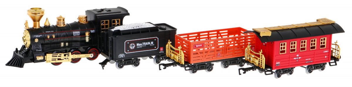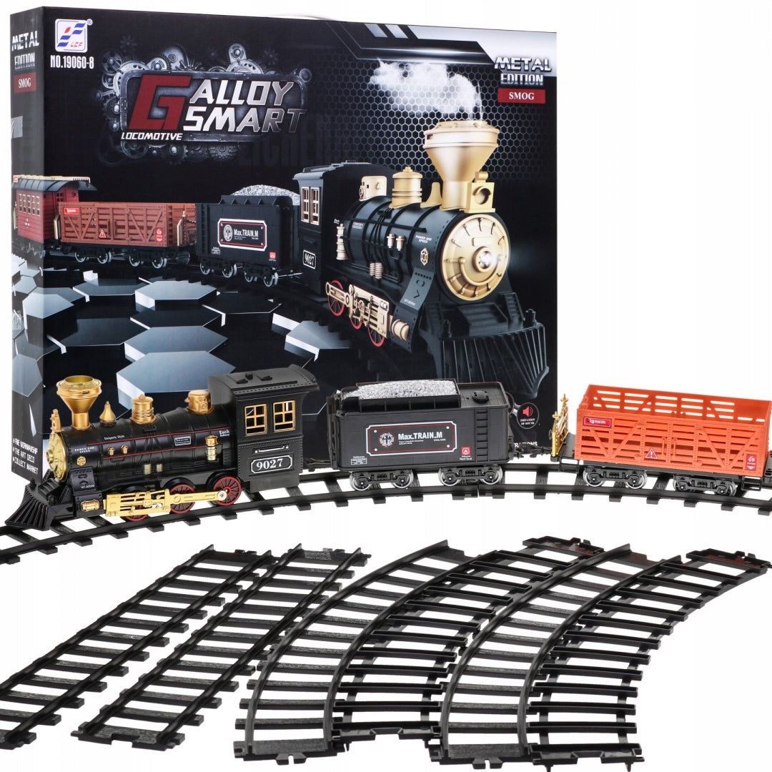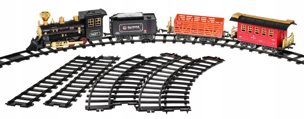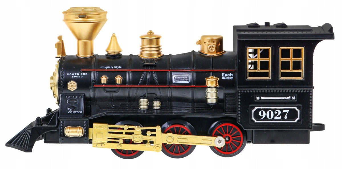 Nuostabus traukinukas su dūmų funkcija ir važiavimo garsais tinka vaikams nuo 5 metų. Žaislas maitinamas 4 x AA 1,5V baterijomis, kurios į komplektą neįeina. Bėgių matmenys yra maždaug 143 cm x 106 cm. Važiuojant lokomotyvas iš kamino išleidžia dūmus (pripylus vandens - komplekte yra vandens pipetė), užsidega priekinėje dalyje sumontuota lemputė. Vikšrus lengva sujungti, todėl juos naudoti yra saugu ir patvaru.
