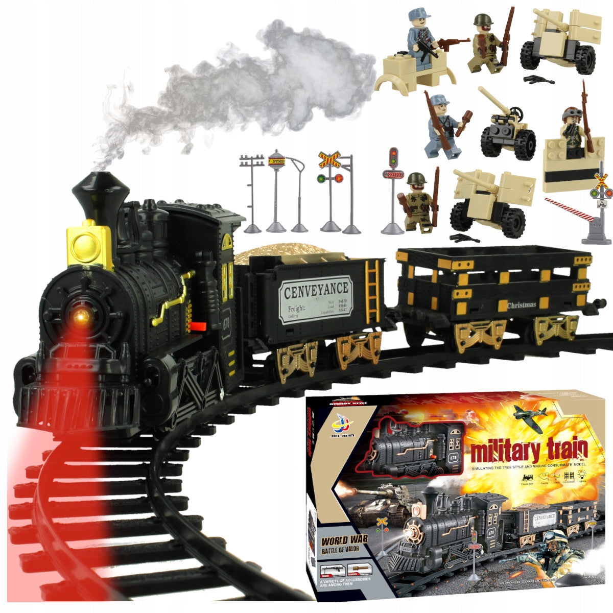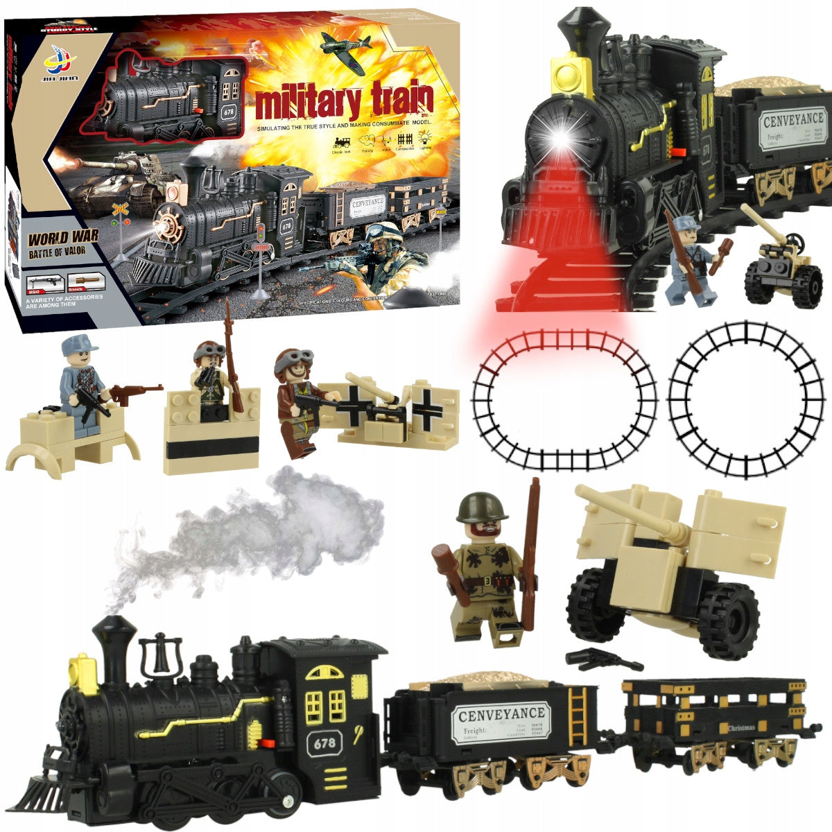 Didelis elektrinis karinis traukinys su 2 vagonais ir kareiviais