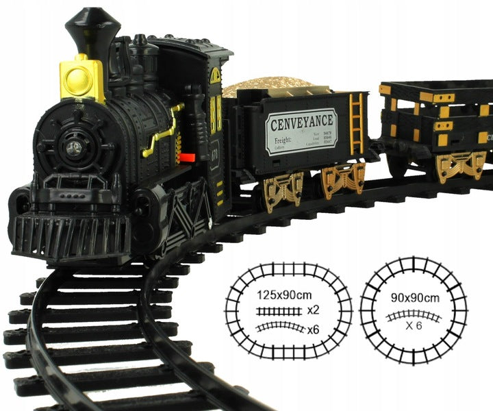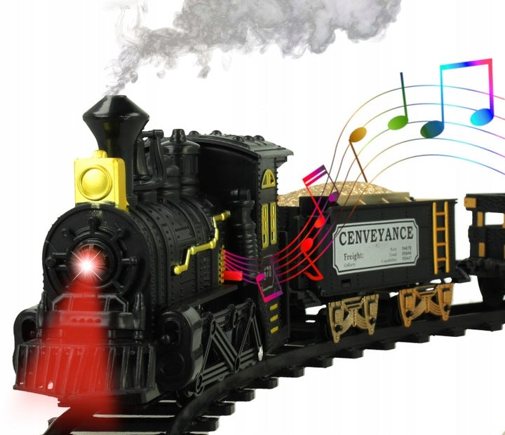 Klasikinis tikroviškų formų lokomotyvas, aprūpintas elektros varikliu, maitinamu trimis AA baterijomis. Kompoziciją papildo du vagonai. Mega lokomotyvas skleidžia tikroviškus garsus: šviesos ir dūmai, sklindantys iš kamino važiuojant.