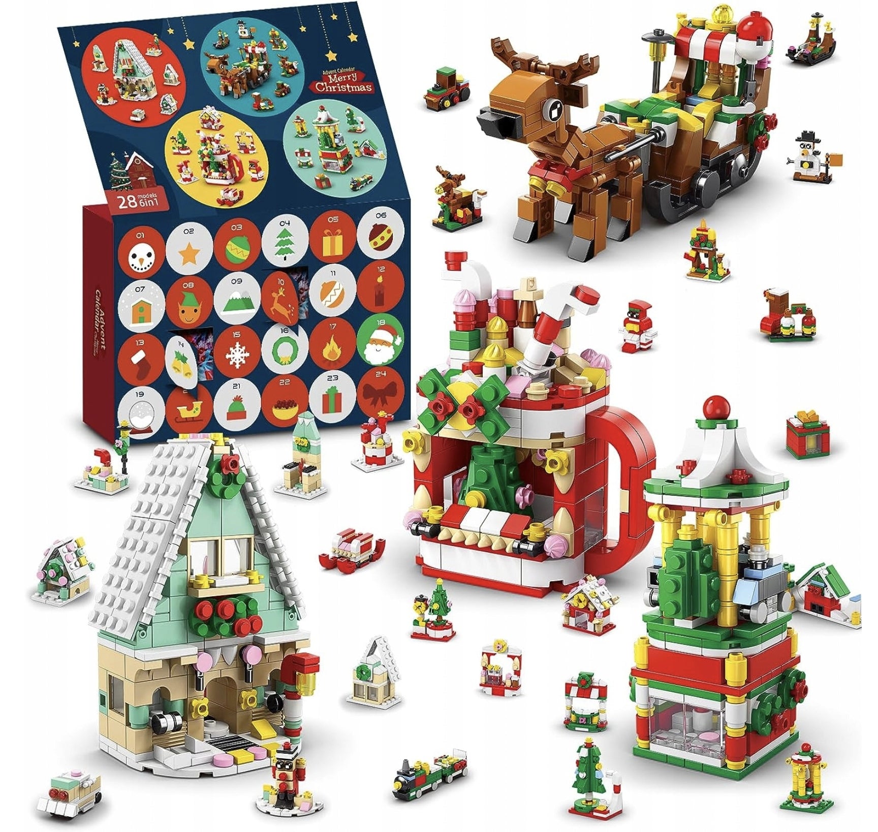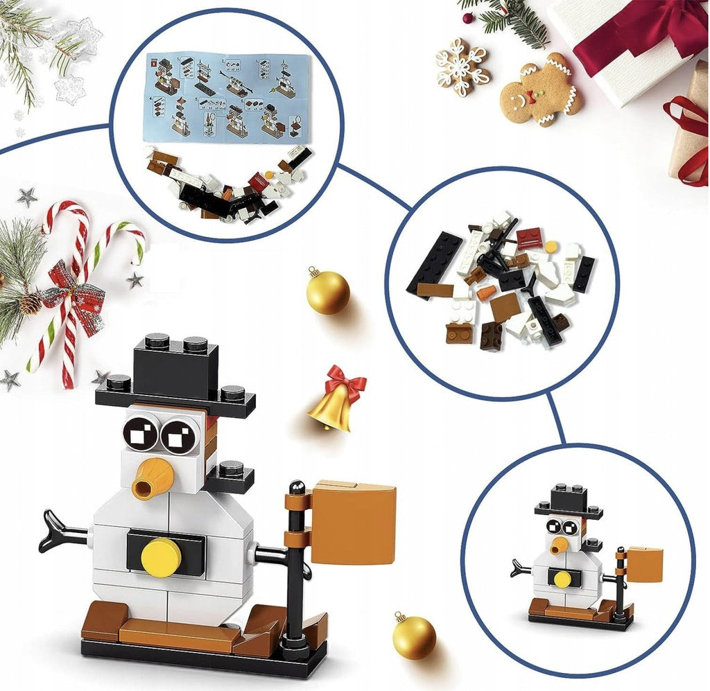 Advento kalendorius su kaladėlėmis siūlo du skirtingus konstravimo variantus: vaikai gali sukurti 24 skirtingus kalėdinius modelius arba, sujungę kaladėles iš 6 mažų rinkinių, pastatyti vieną didelį maketą. Ši konstravimo sistema lavina vaikų motoriką ir kūrybiškumą, leidžia jiems statyti individualiai ir kurti didesnius projektus.