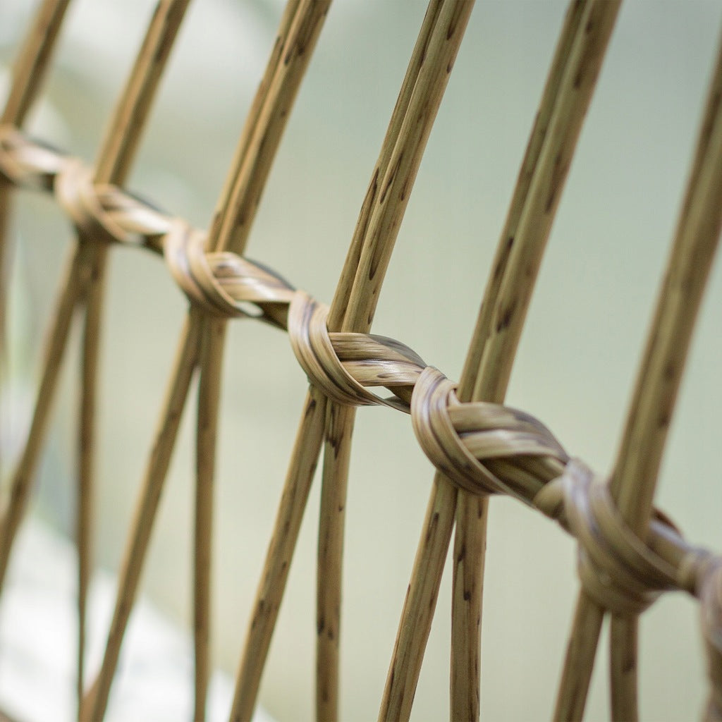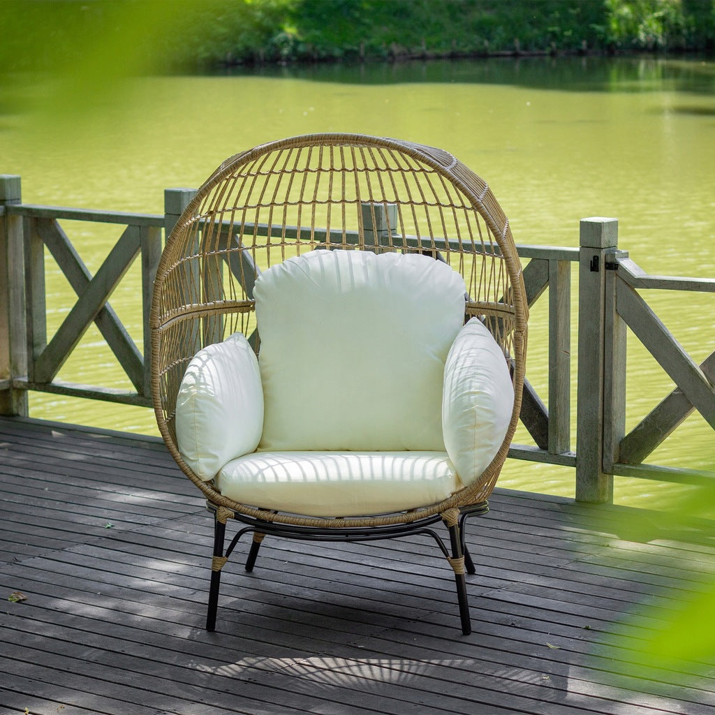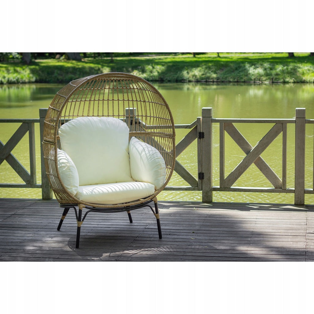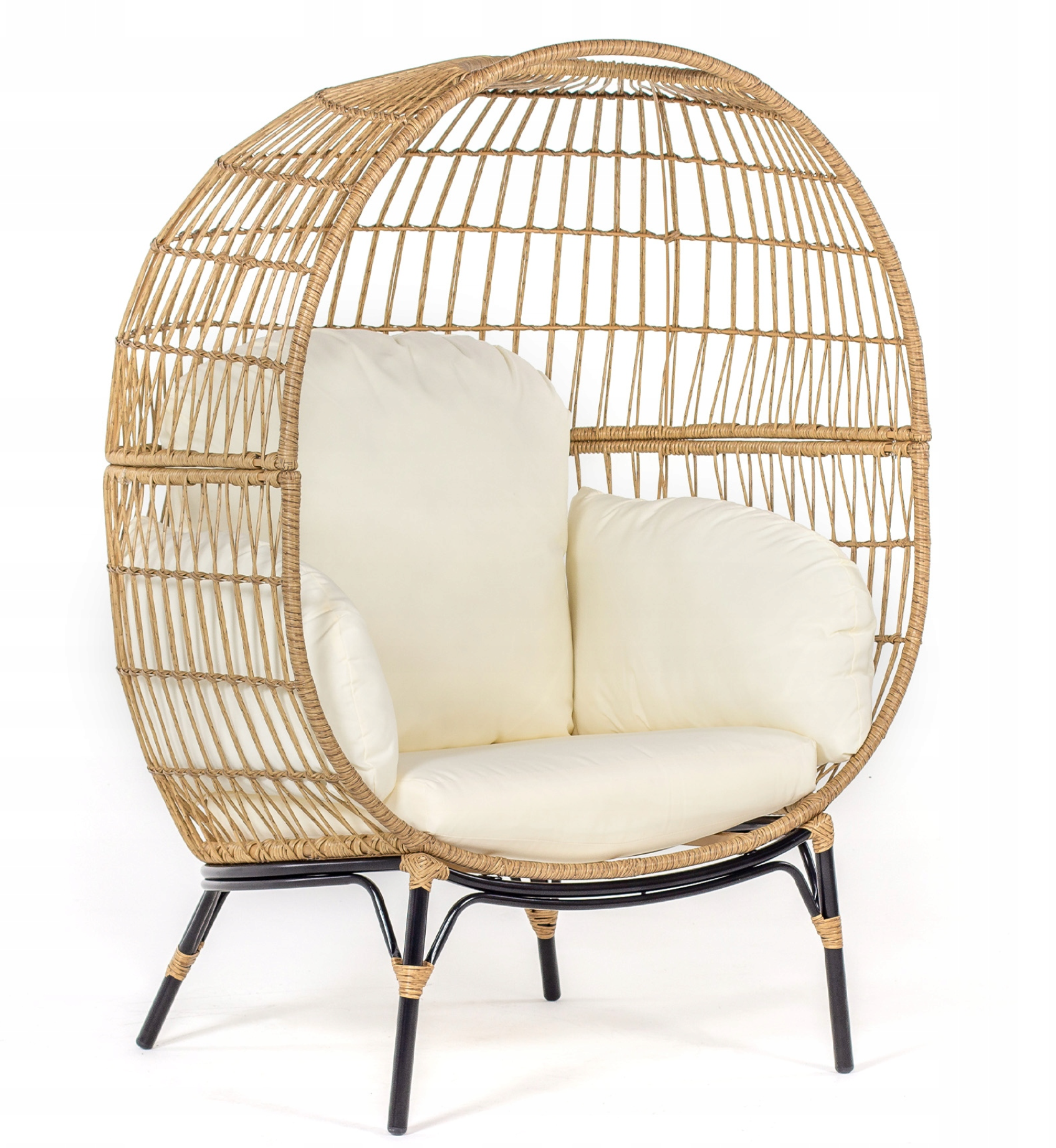 Jo sėdynė ir atlošai pagaminti iš natūralaus atspalvio rotango, dėl kurio kartu su kremine pagalvėlių spalva ALESSIA fotelis atrodo itin elegantiškai.
